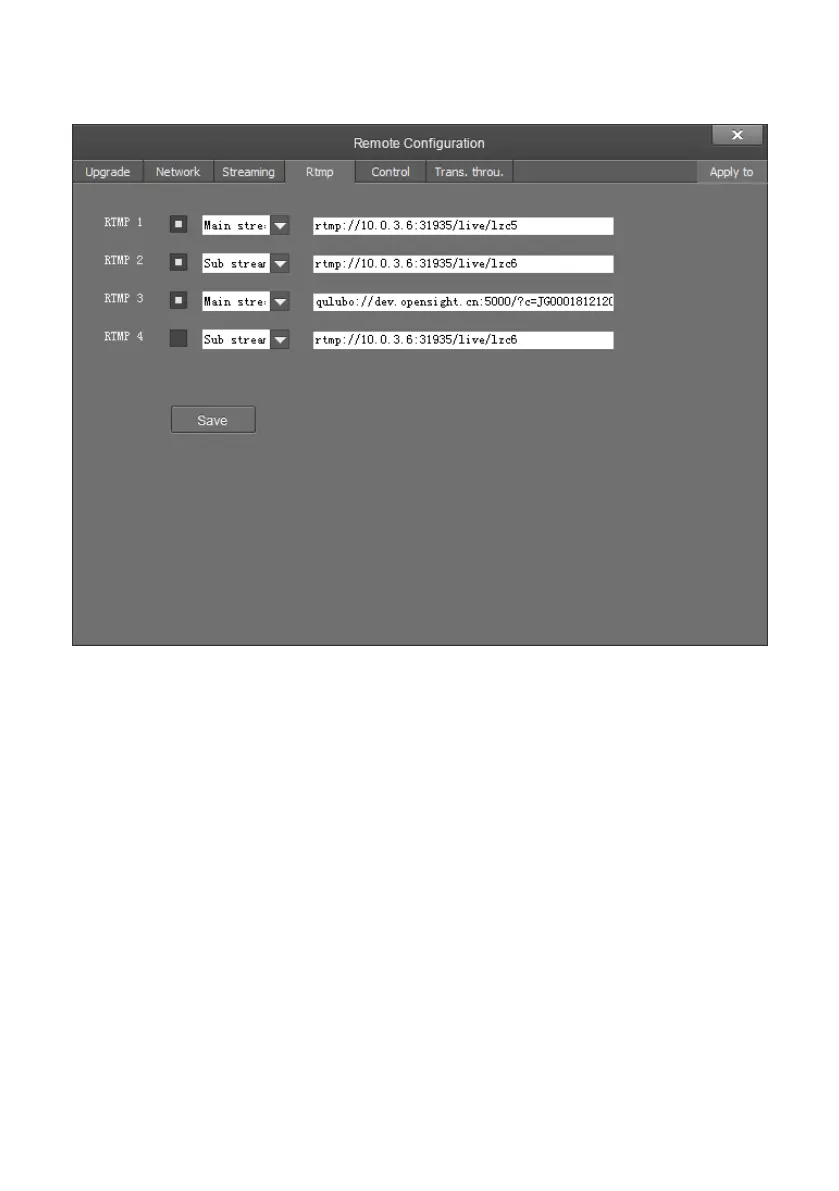 In RTMP1 and RTMP2, main stream, sub stream, third stream, fourth stream can be chosen to