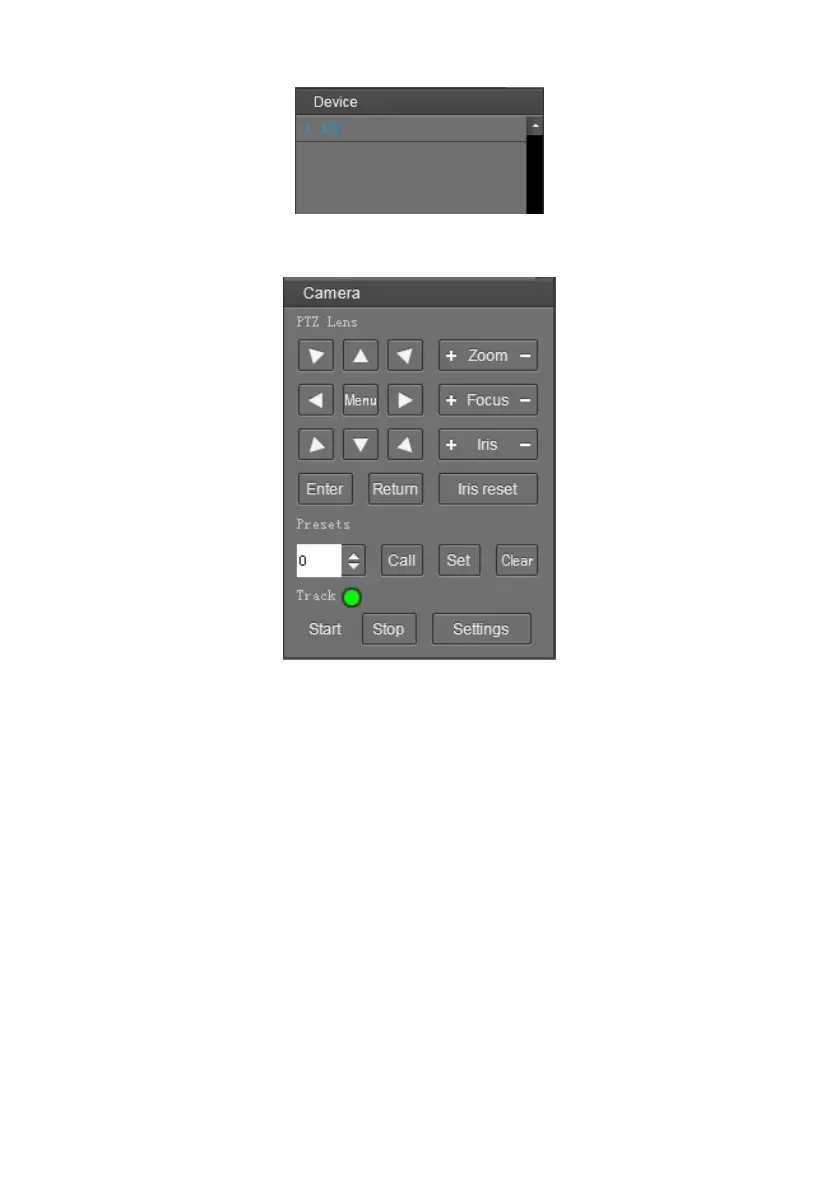 Device Control: get control of the selected camera (camera name in blue).