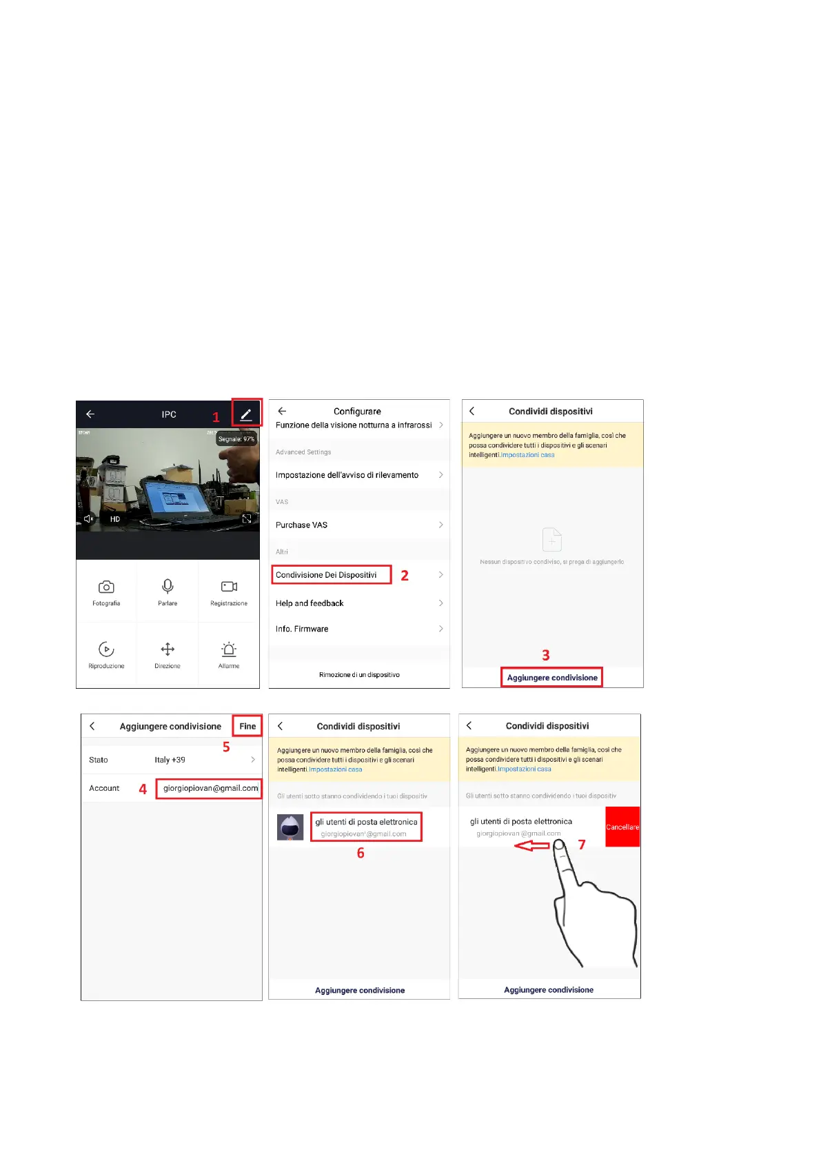 Condivisione come membro della famiglia: visualizzazione Live, delle registrazioni e movimentazione