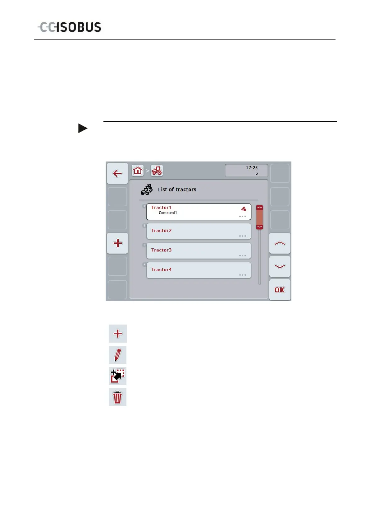 You will find a list of the stored tractors under the List of Tractors menu item.