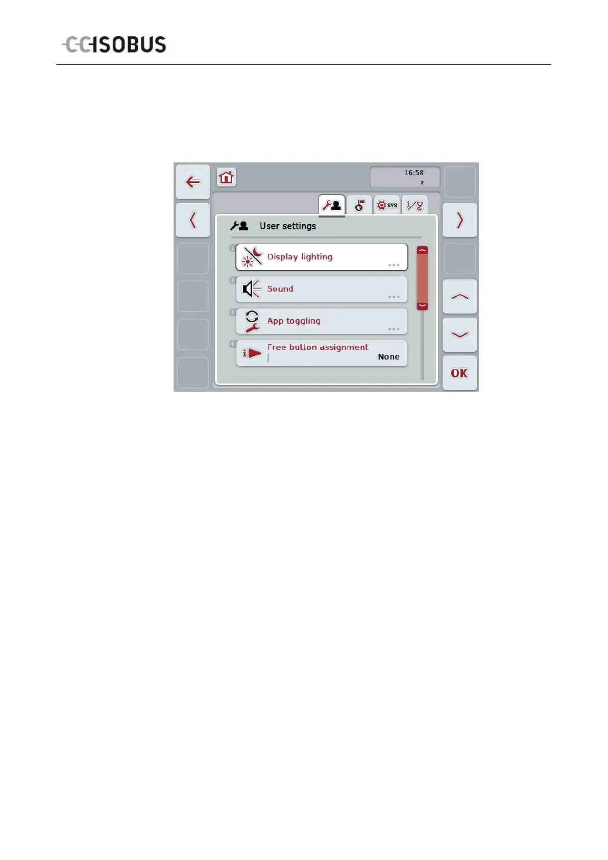 1. In the touchscreen press on the corresponding tab or select it using the arrow