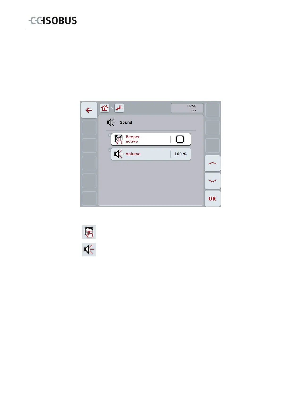 To change Sound settings proceed as follows: