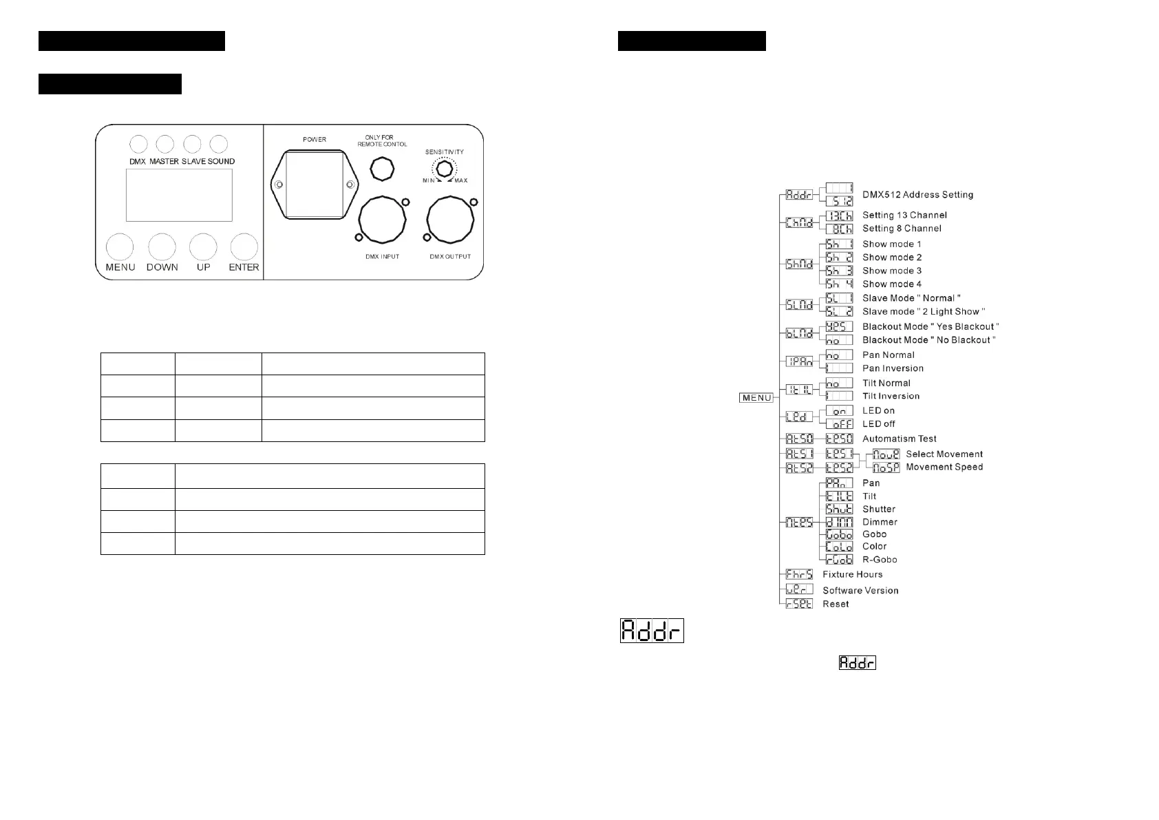 button and the display will blink. Use DOWN and UP button to change the DMX512 address.