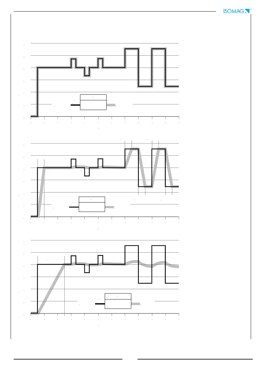 The following diagrams show the response of the instrument for a flow rate variation from 0 to