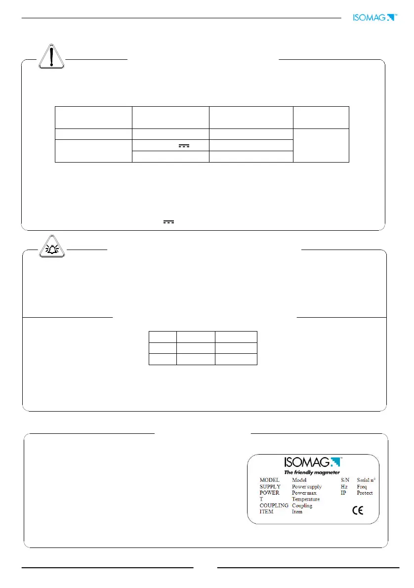 Voltage variations must not exceed ±10% of the nominal one.