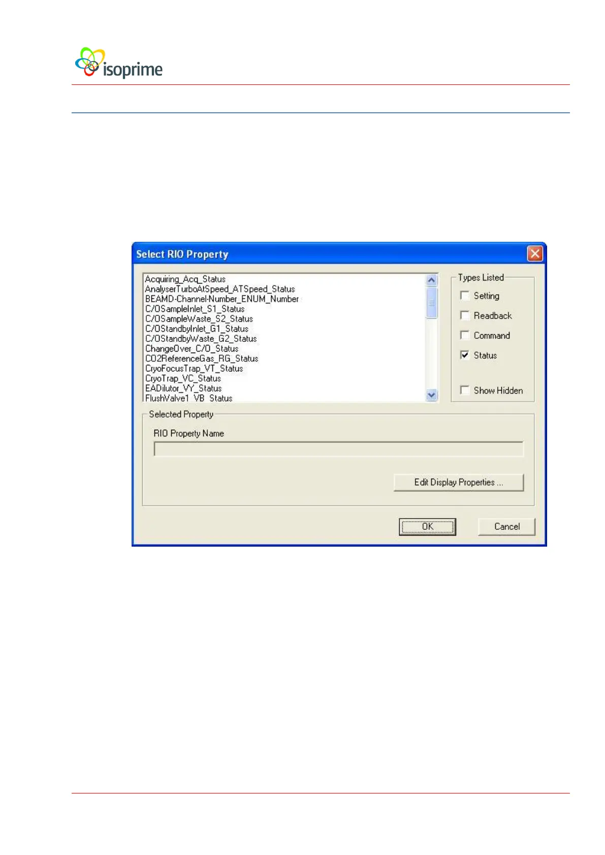 that opens the Select Rio Property dialog shown below: