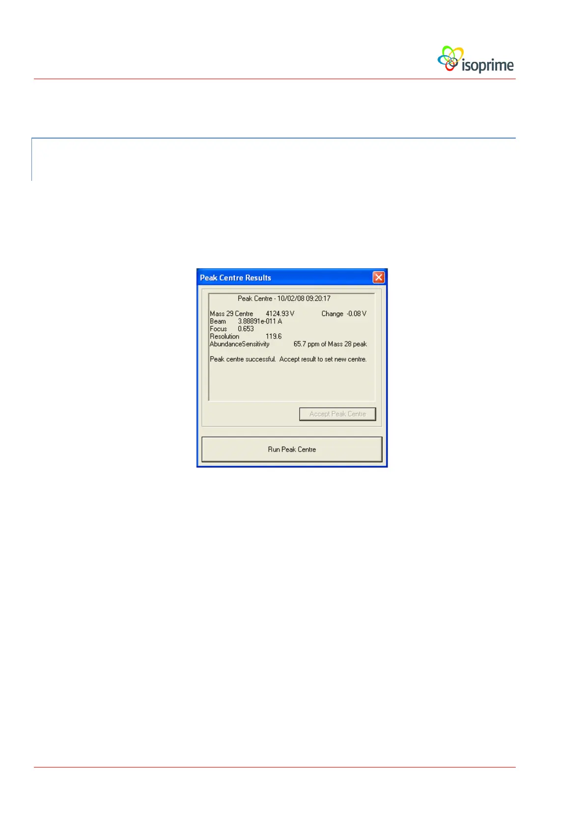 window. Once the peak centre scan has finished, the following dialog box appears: