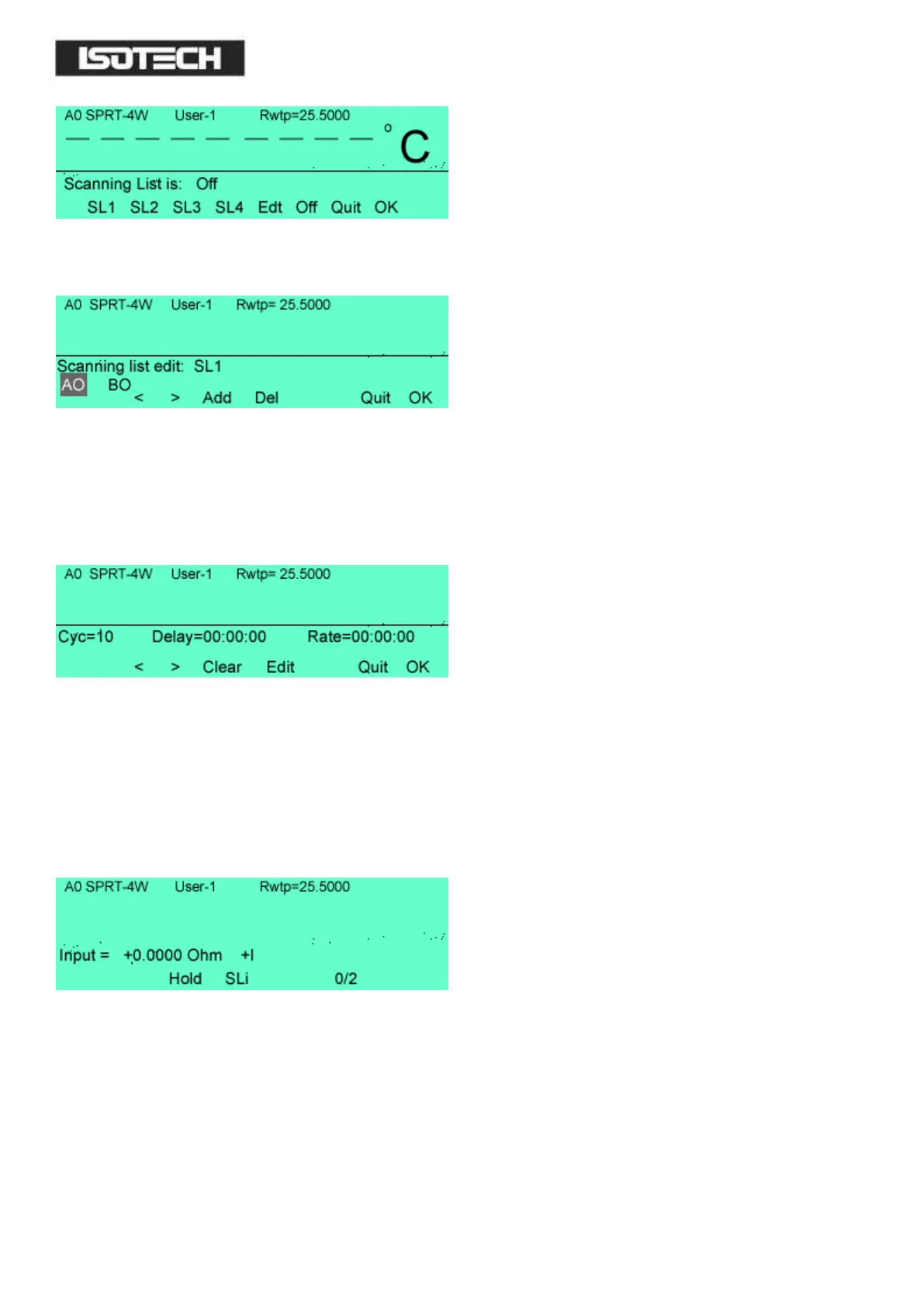 continuous scan press Clear. Using the > key select Delay and Edit key in the required delay time between scans