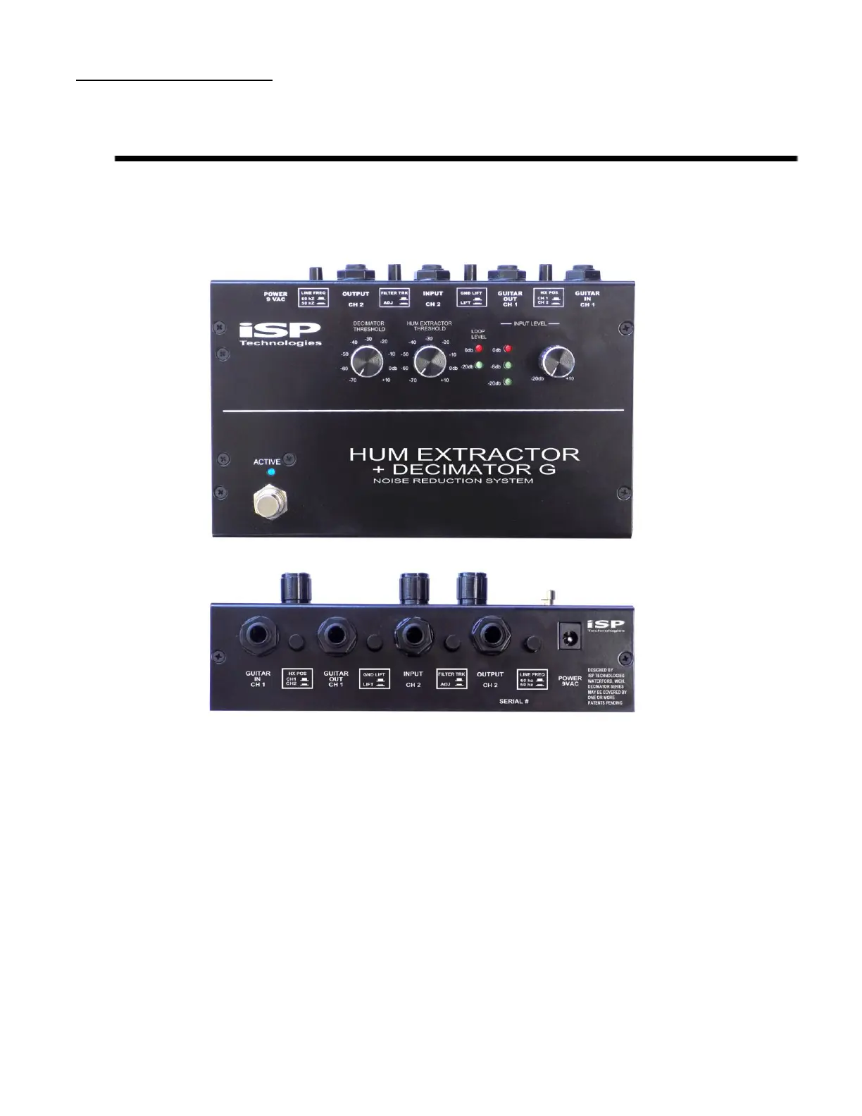 HUM EXTRACTOR +DECIMATOR G to function properly the direct guitar input signal needs to