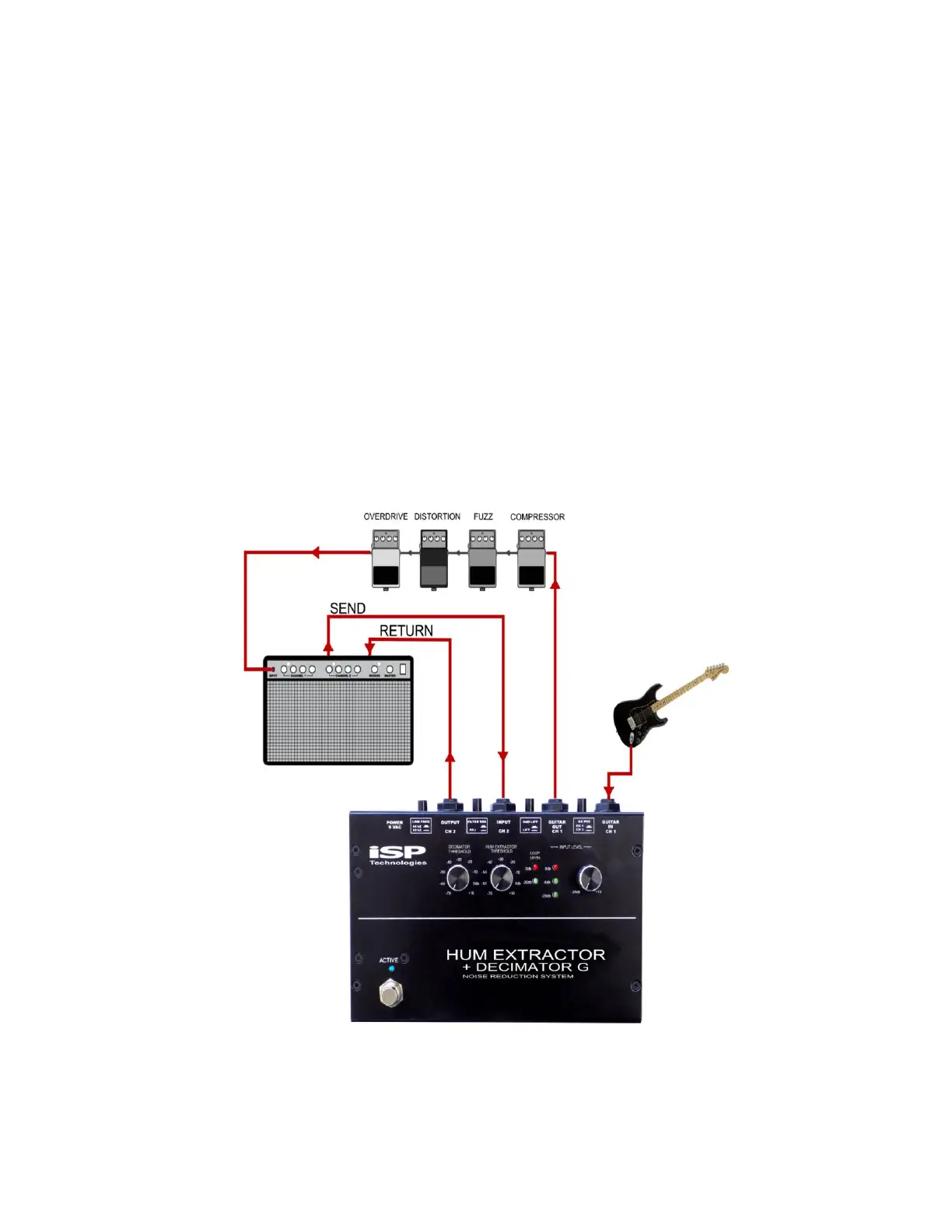 chain and the DECIMATOR is in the signal path after the preamplifier of the guitar amplifier.