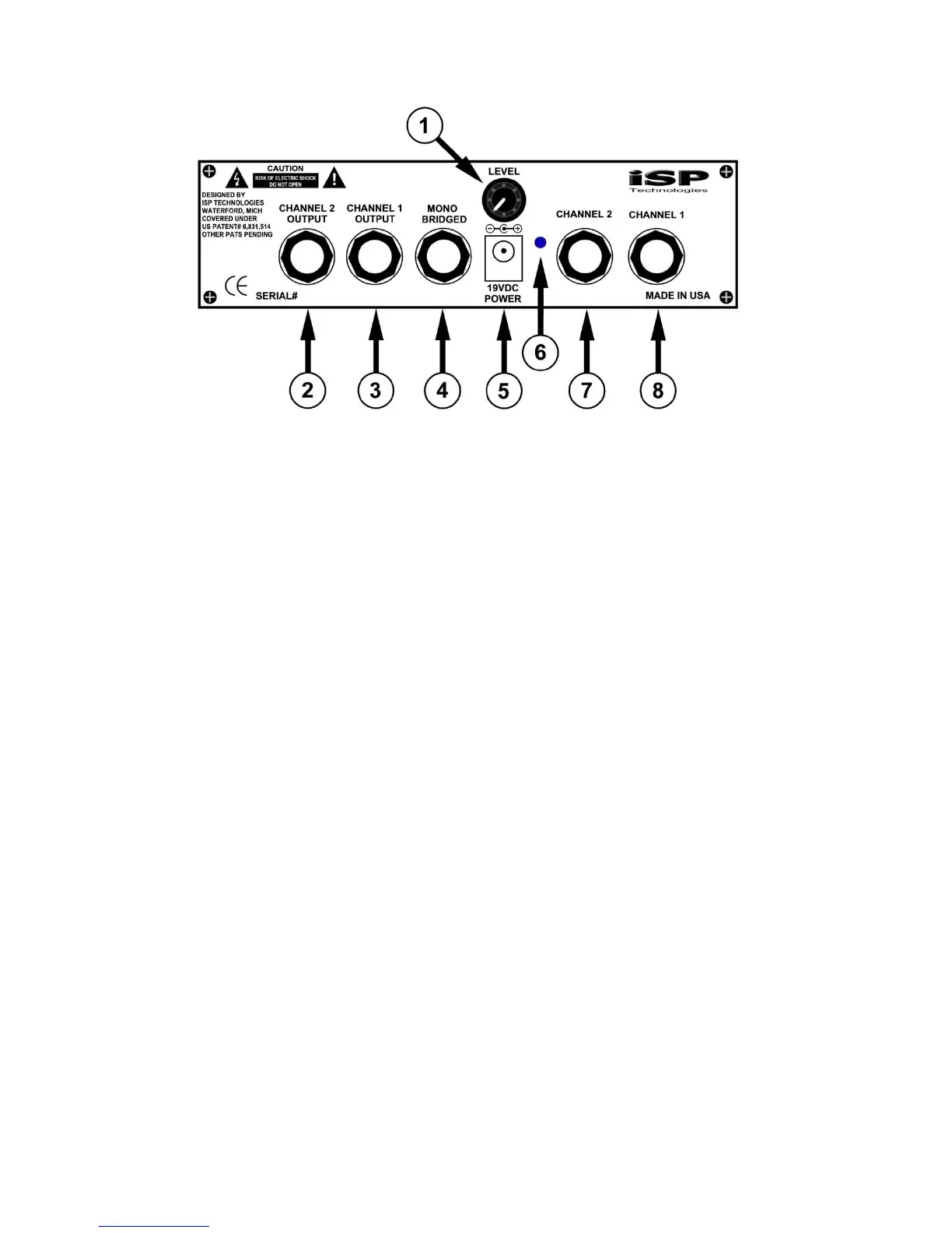 Channel 2 Speaker connection, connect ¼ speaker cord to Channel 2 speaker. Use