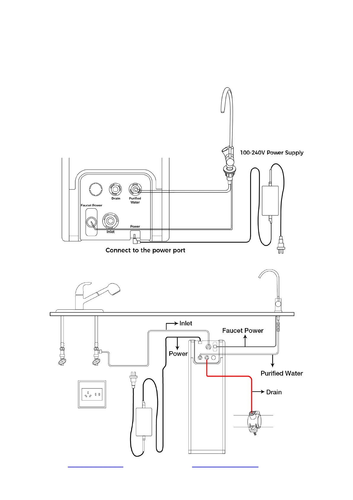 socket on top of the system, then plug the power cable on the faucet to the "Faucet power"