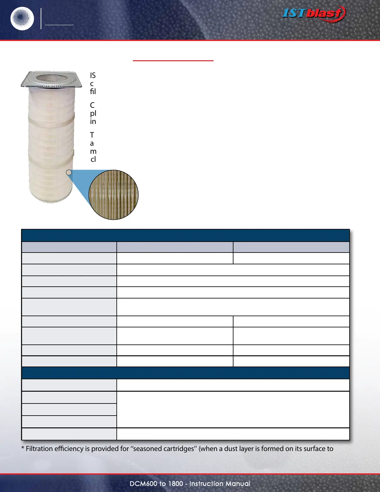* Filtration e ciency is provided for ‘‘seasoned cartridges’’ (when a dust layer is formed on its surface to