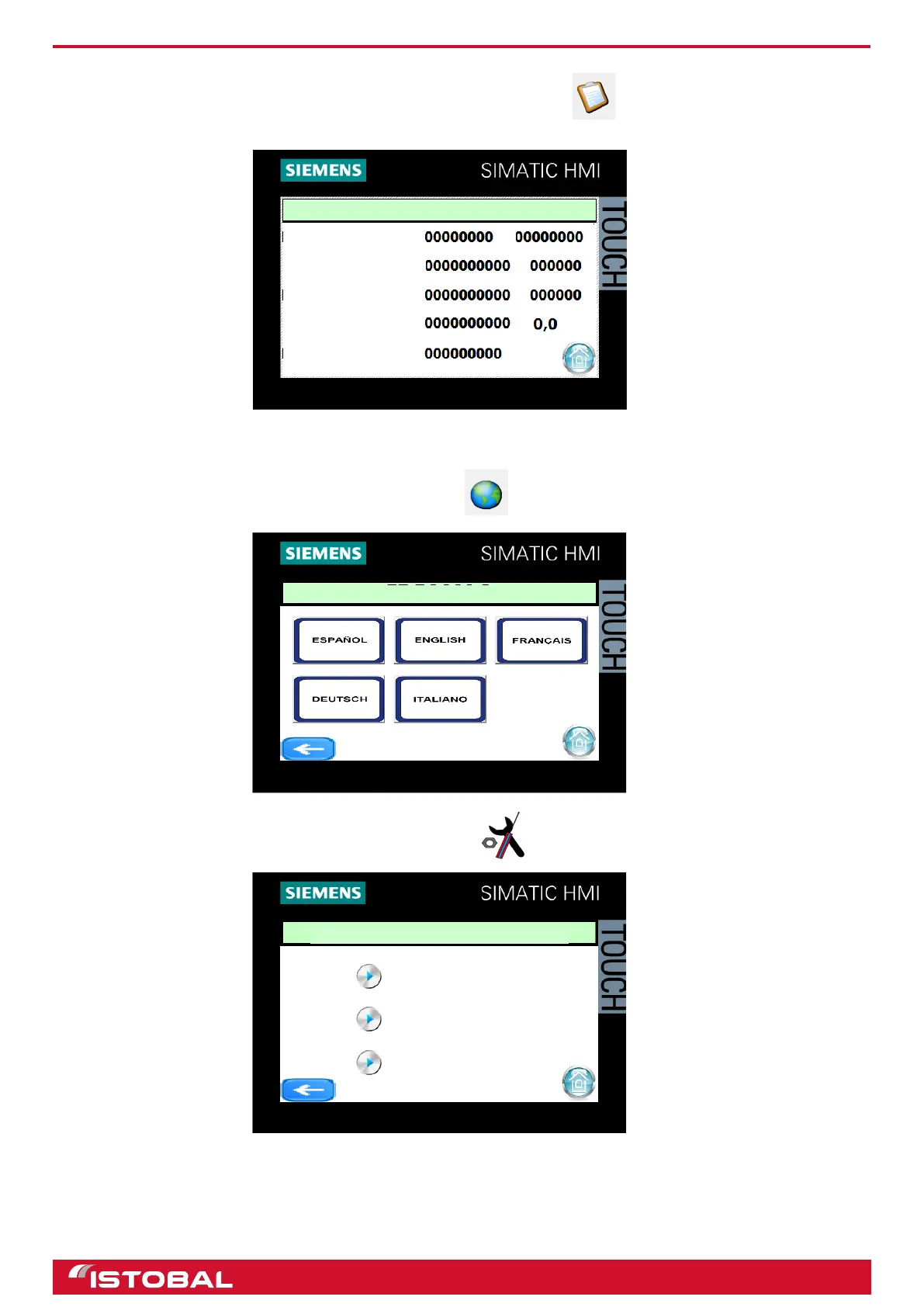 The language to be used on the touch-screen is set here.