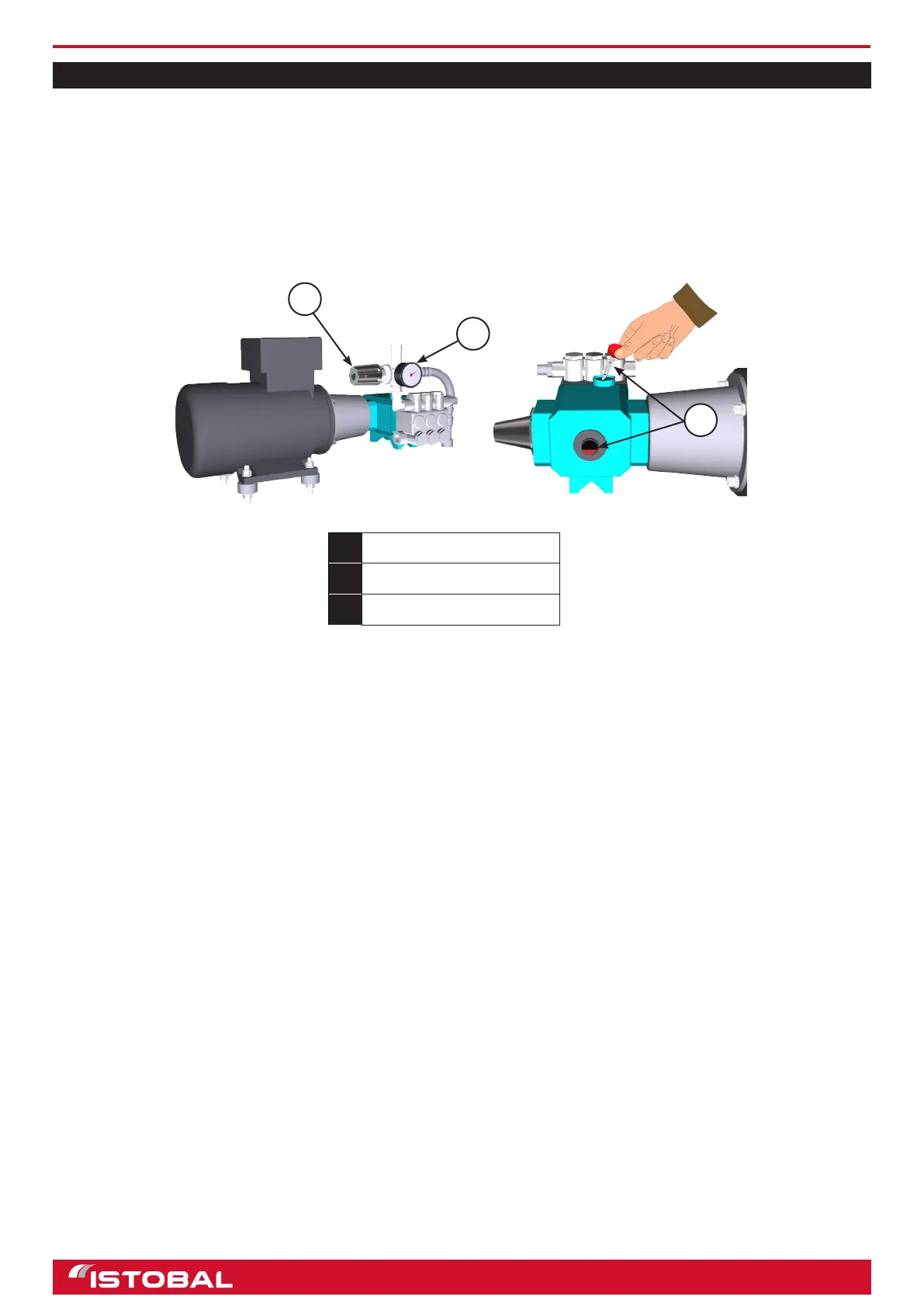 The output pressure of the high pressure pumps should be constant at 80 bars. The gauge (A) installed on the pump