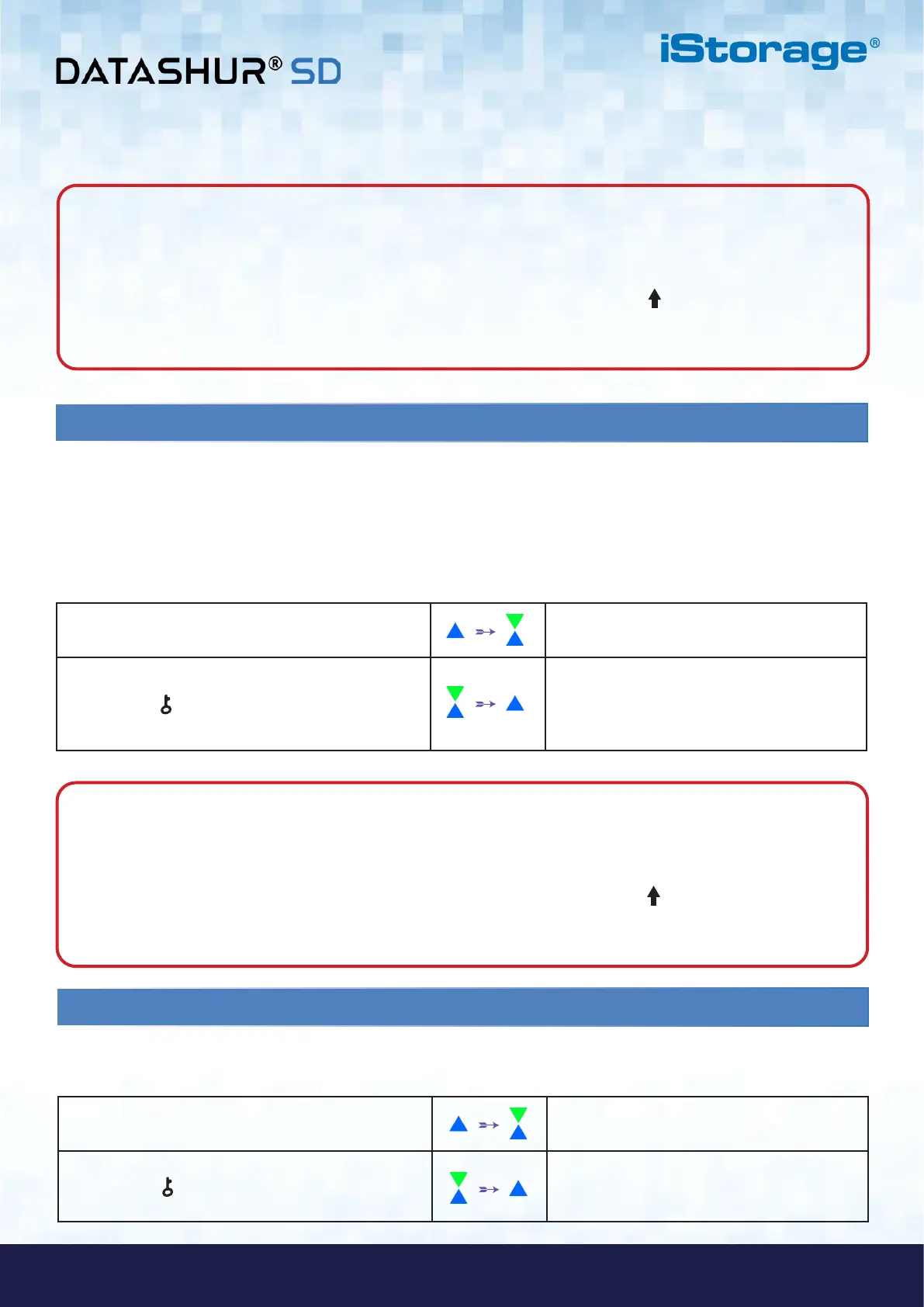Note: When the datAshur SD is in Admin Mode, the BLUE LED will remain on and solid for 30 seconds only,