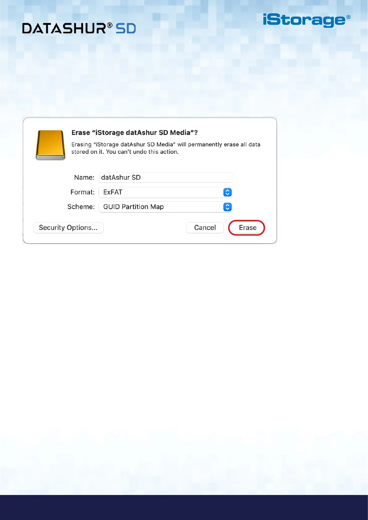 6. The formatted datAshur SD (microSD card) will appear in the Disk Utility window and will mount onto the desktop.
