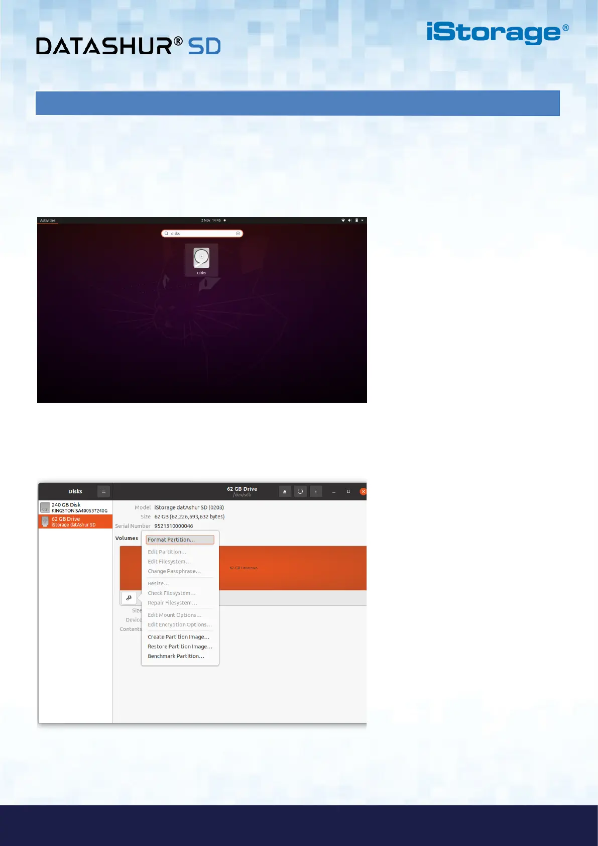 1. Insert the micro SD card in the datAshur SD drive and unlock and attach the drive to the Linux machine.