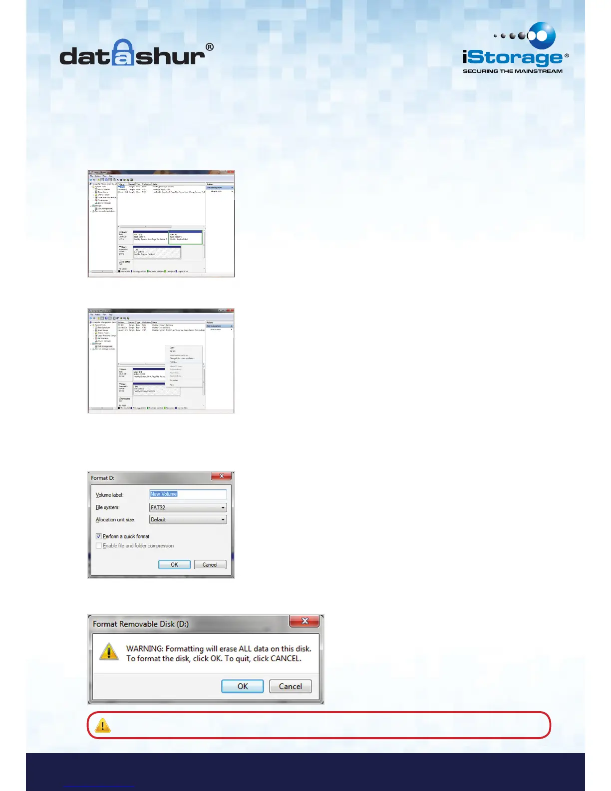 5. Click OK on the Format warning window to continue with formatting the drive.