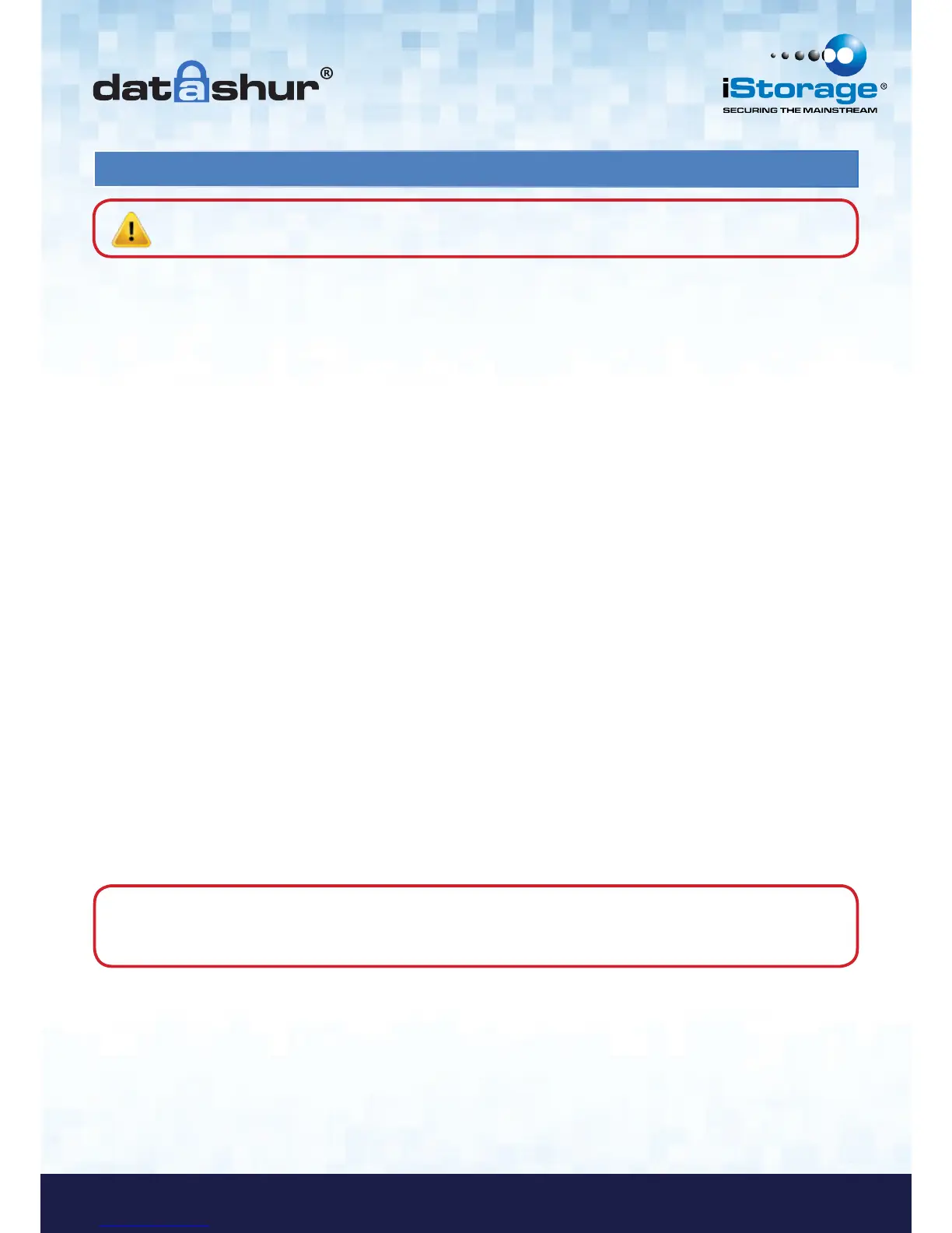 Caution: There are no “Back Doors” to our products, we cannot retrieve a forgotten PIN or retrieve any data
