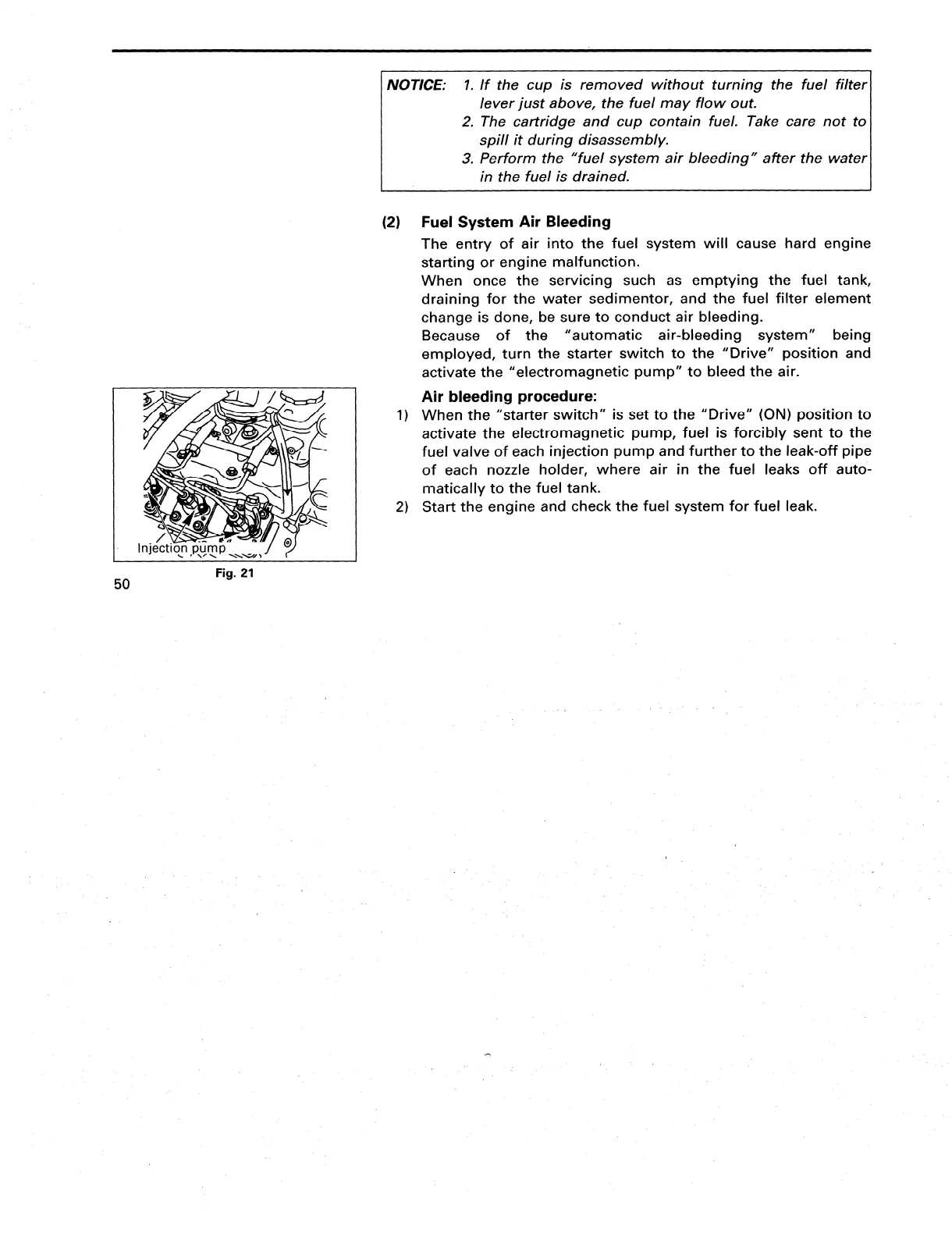 NOTICE: 1. If the cup is removed without turning the fuel filter