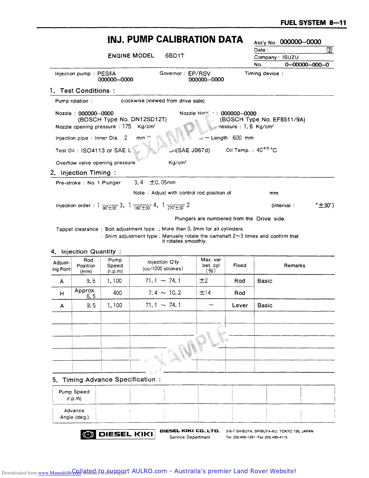 Isuzu 4BB1 - Inj. Pump Calibration Data