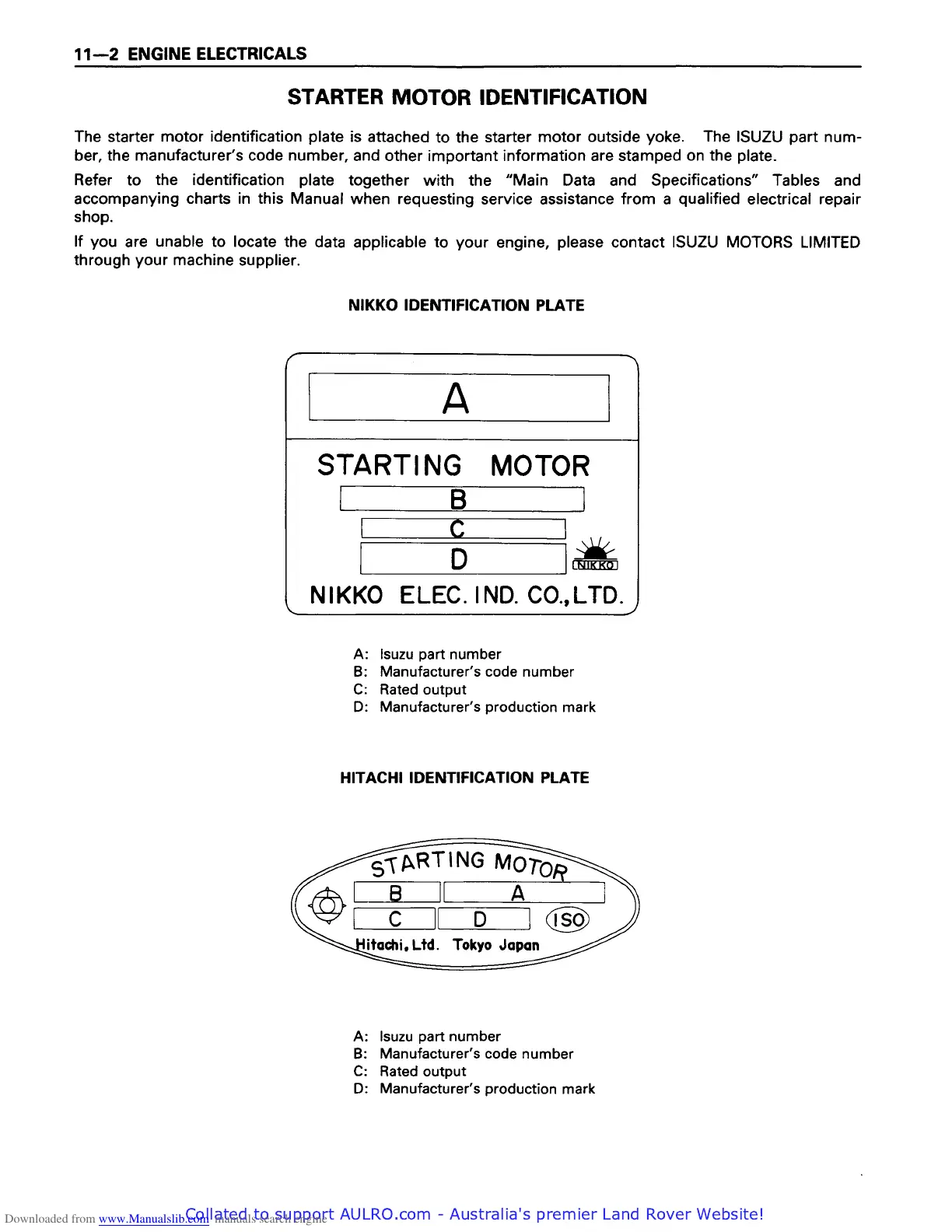 Isuzu 4BB1 - Starter Motor Identification