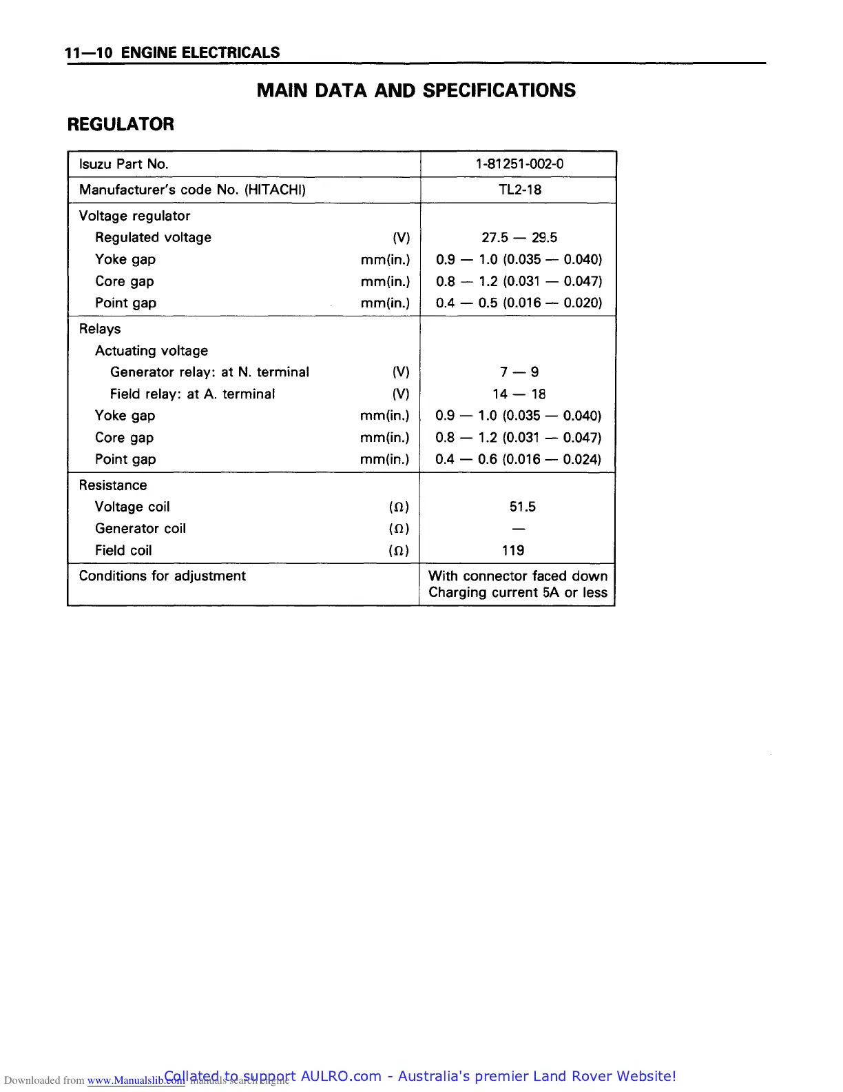 Isuzu 4BB1 - Regulator Main Data and Specifications