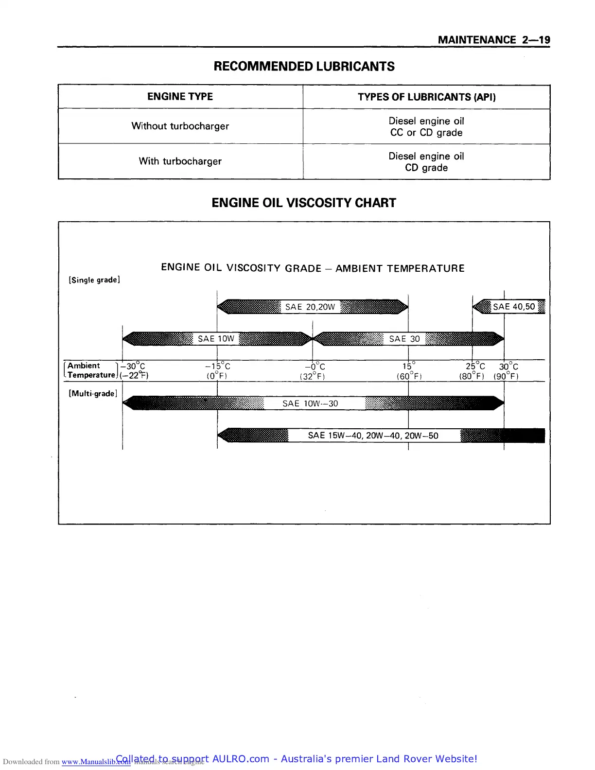 Isuzu 4BB1 - Recommended Lubricants; Engine Oil Viscosity Chart