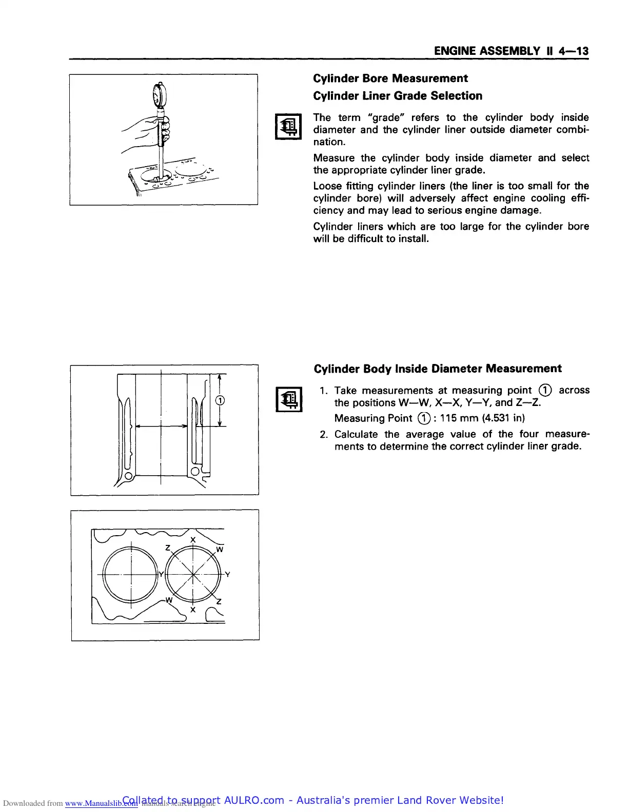 Isuzu 4BB1 - Cylinder Bore Measurement; Cylinder Liner Grade Selection; Cylinder Body Inside Diameter Measurement