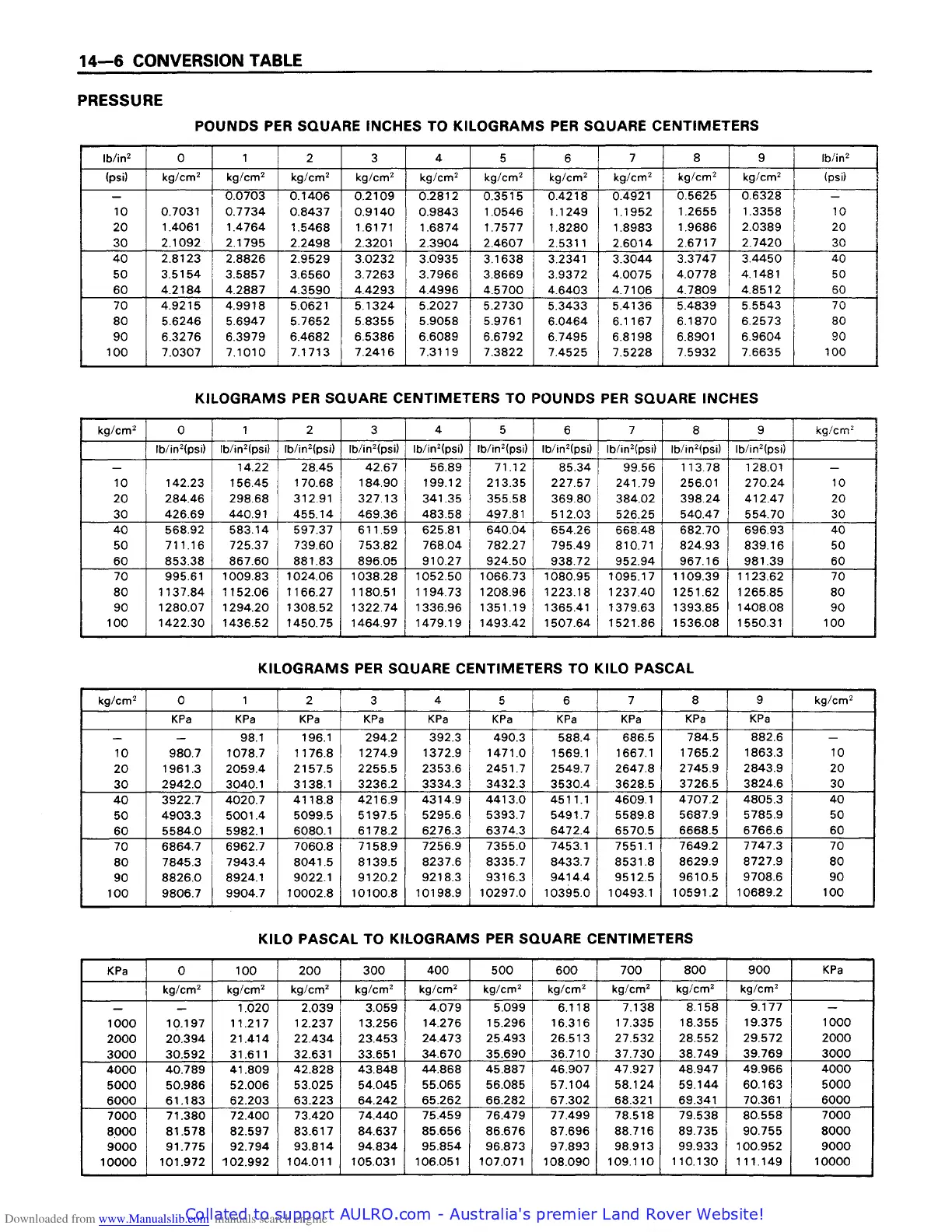 Isuzu 6BB1 - Pressure Conversion Table