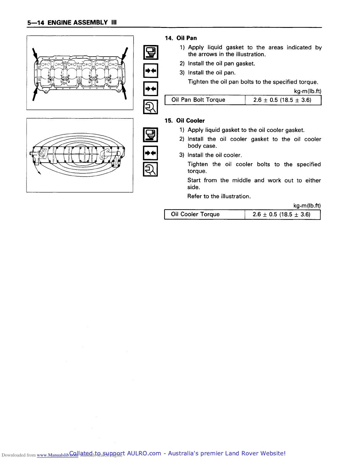 Isuzu 6BD1 - Oil Pan Installation; Oil Cooler Installation