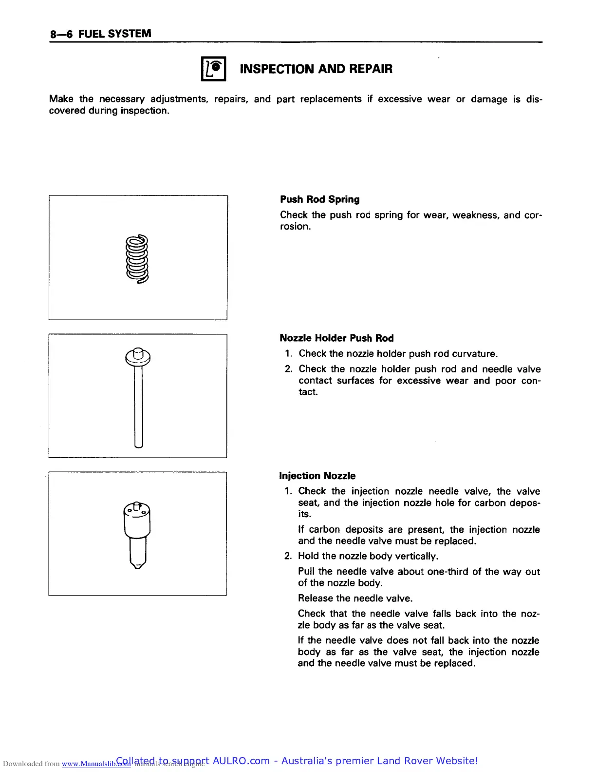 Isuzu 6BD1 - Push Rod Spring Check; Nozzle Holder Push Rod Check; Injection Nozzle Check