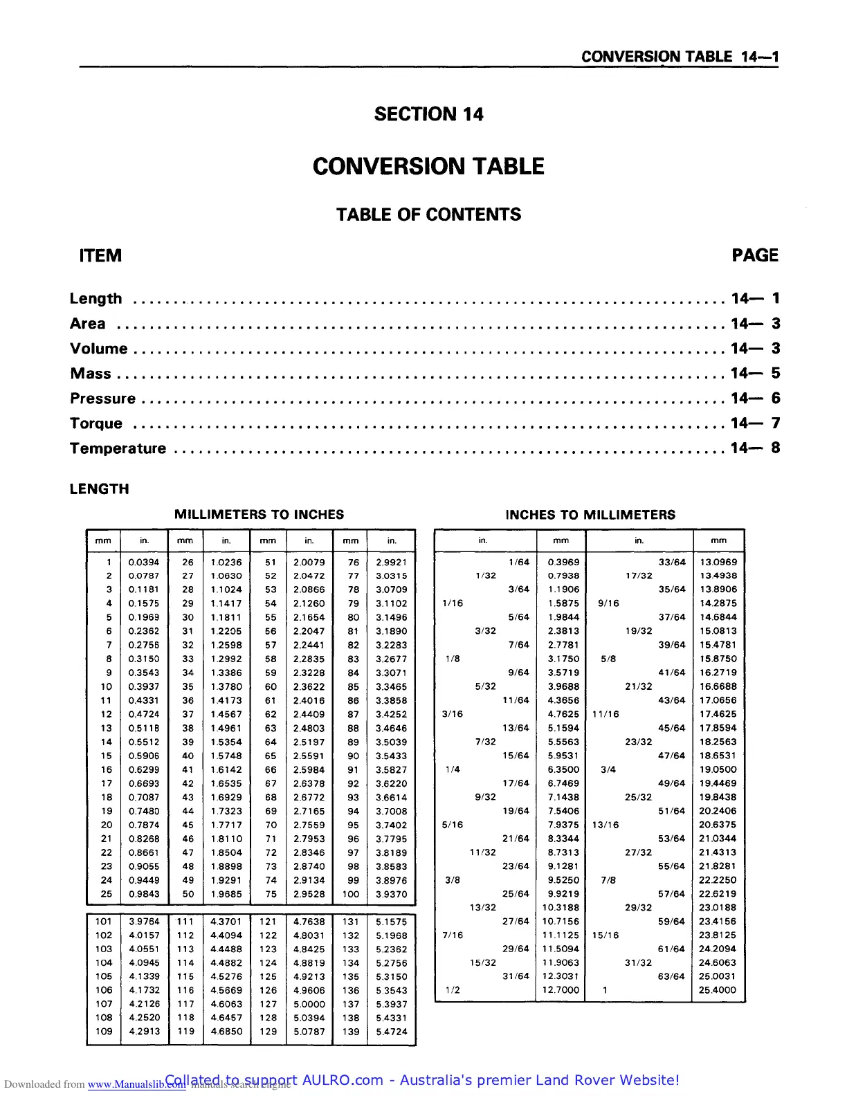 Isuzu 6BD1 - Conversion Table; Length Conversion Table