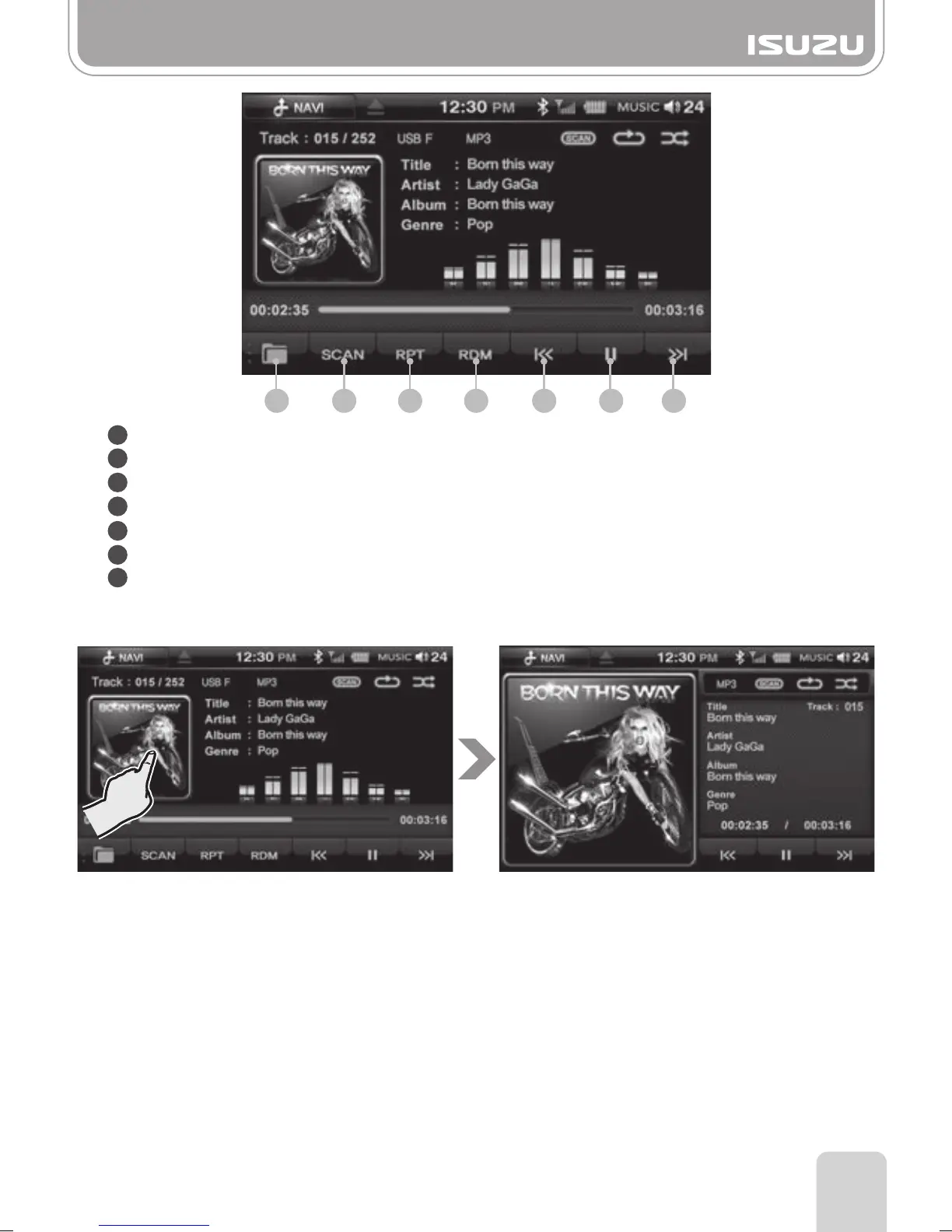 SCAN Button: Plays the first 10 seconds of the track and then moves onto the next one.