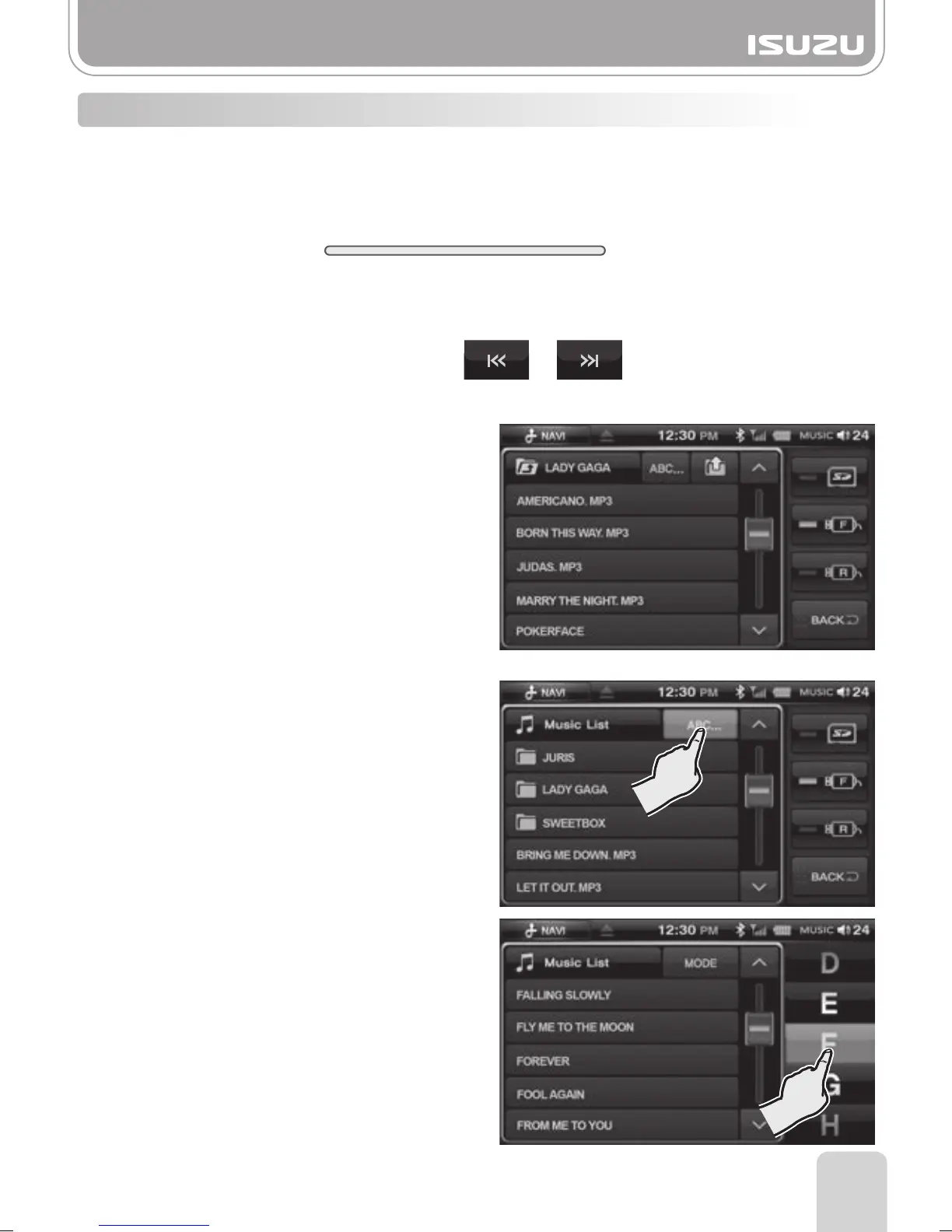 A. Press the ABC… Button in the music list.