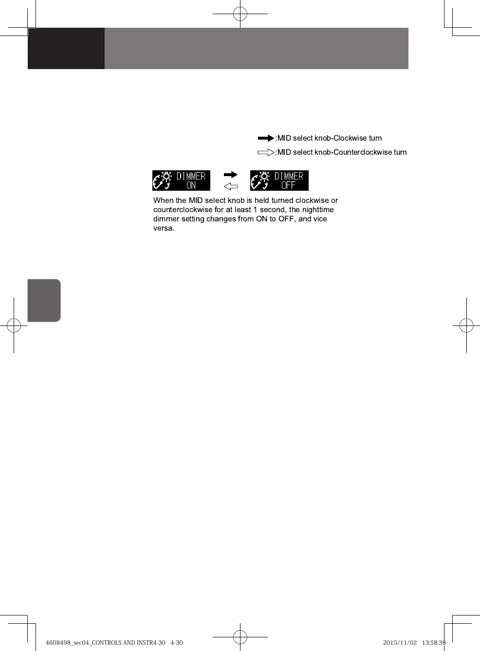 on. To set the nighttime dimmer ON, press the MID select knob. If the MID is too dark