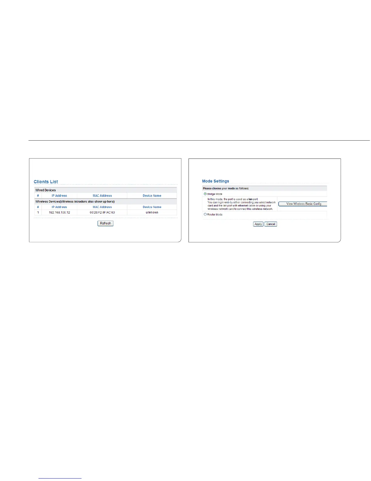 This page displays information of computers connected to the router,