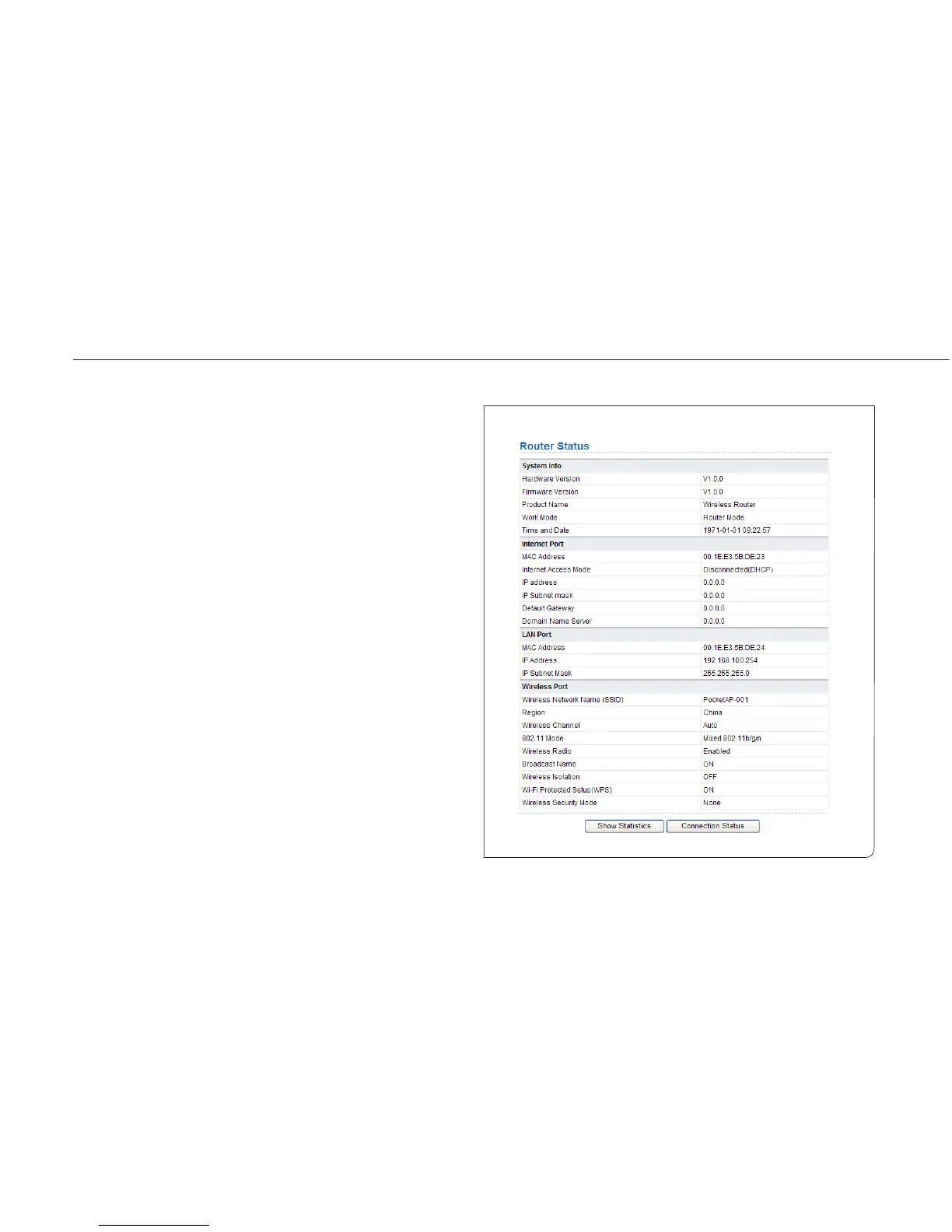 ISY INW5000 - Web Configuration for the Router Mode; Router Status (Router Mode)