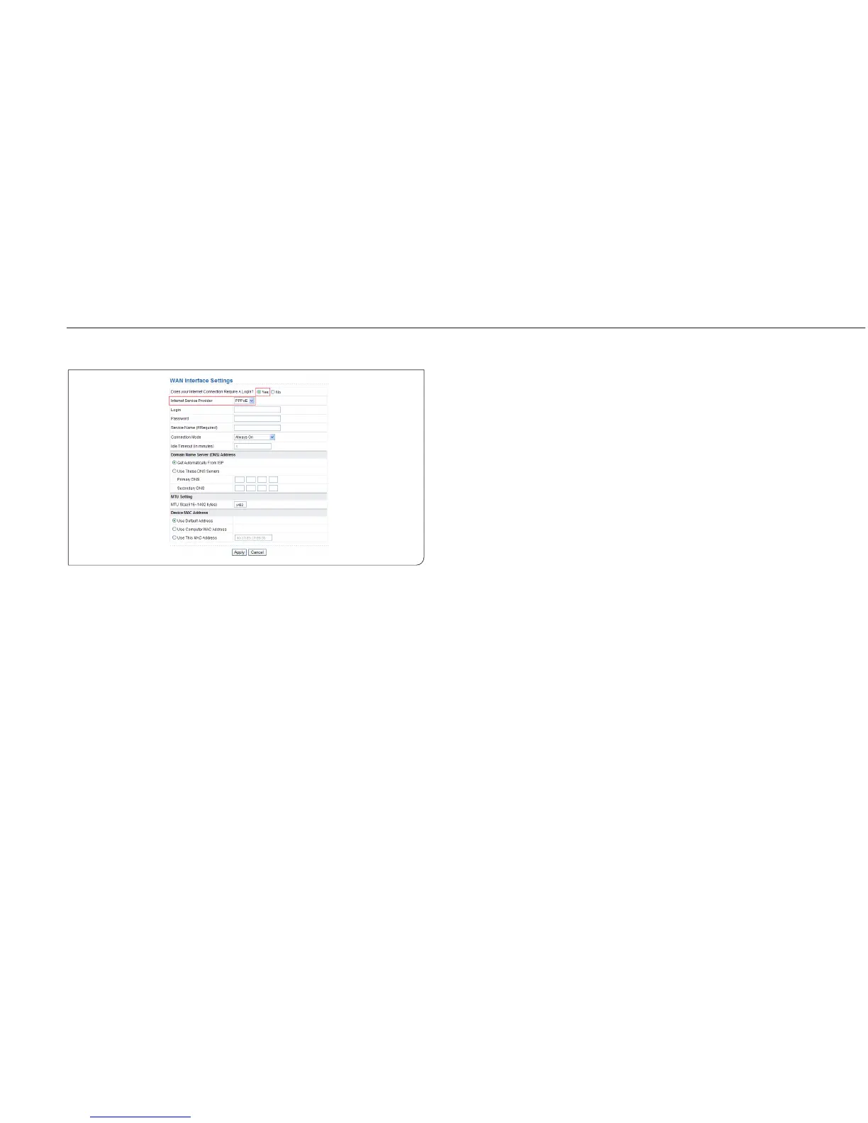Login: Enter the user name for PPPoE dialup provided by the ISP.