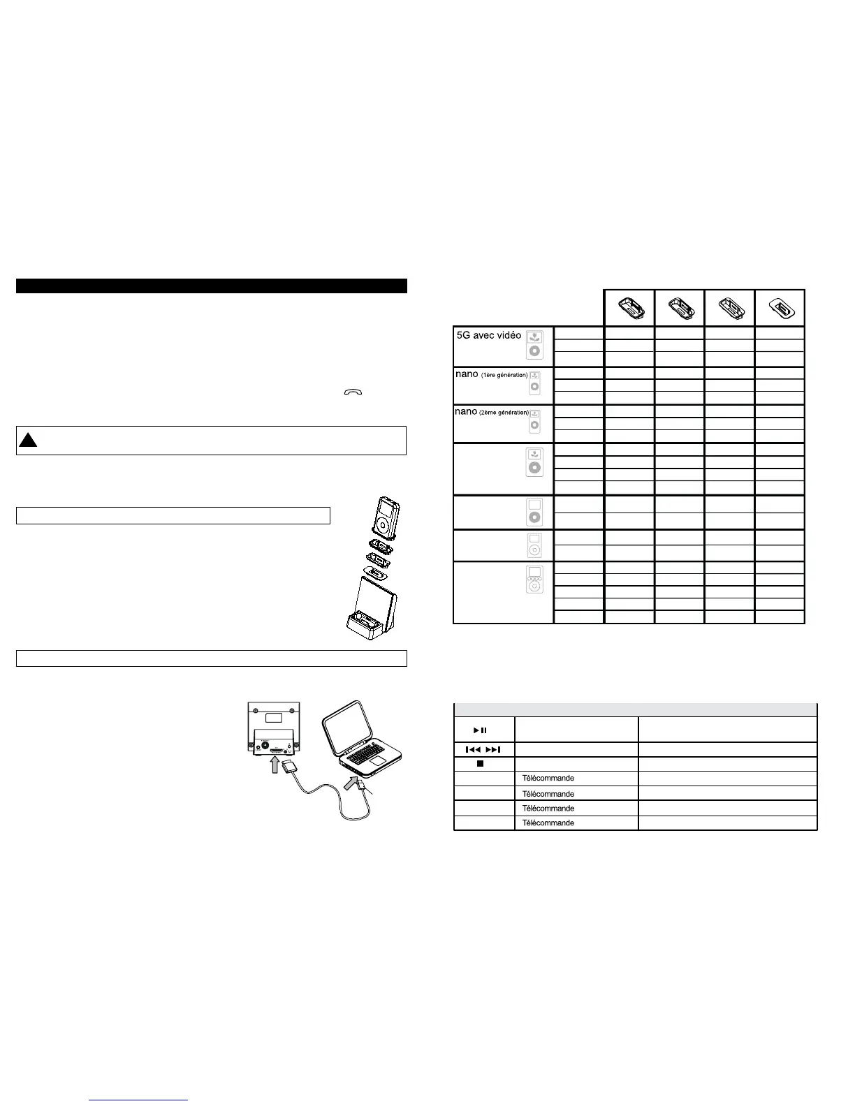 l’adaptateur adéquat. LE NON-RESPECT DE CETTE MISE EN GARDE POURRAIT ENDOMMAGER L’iPod.