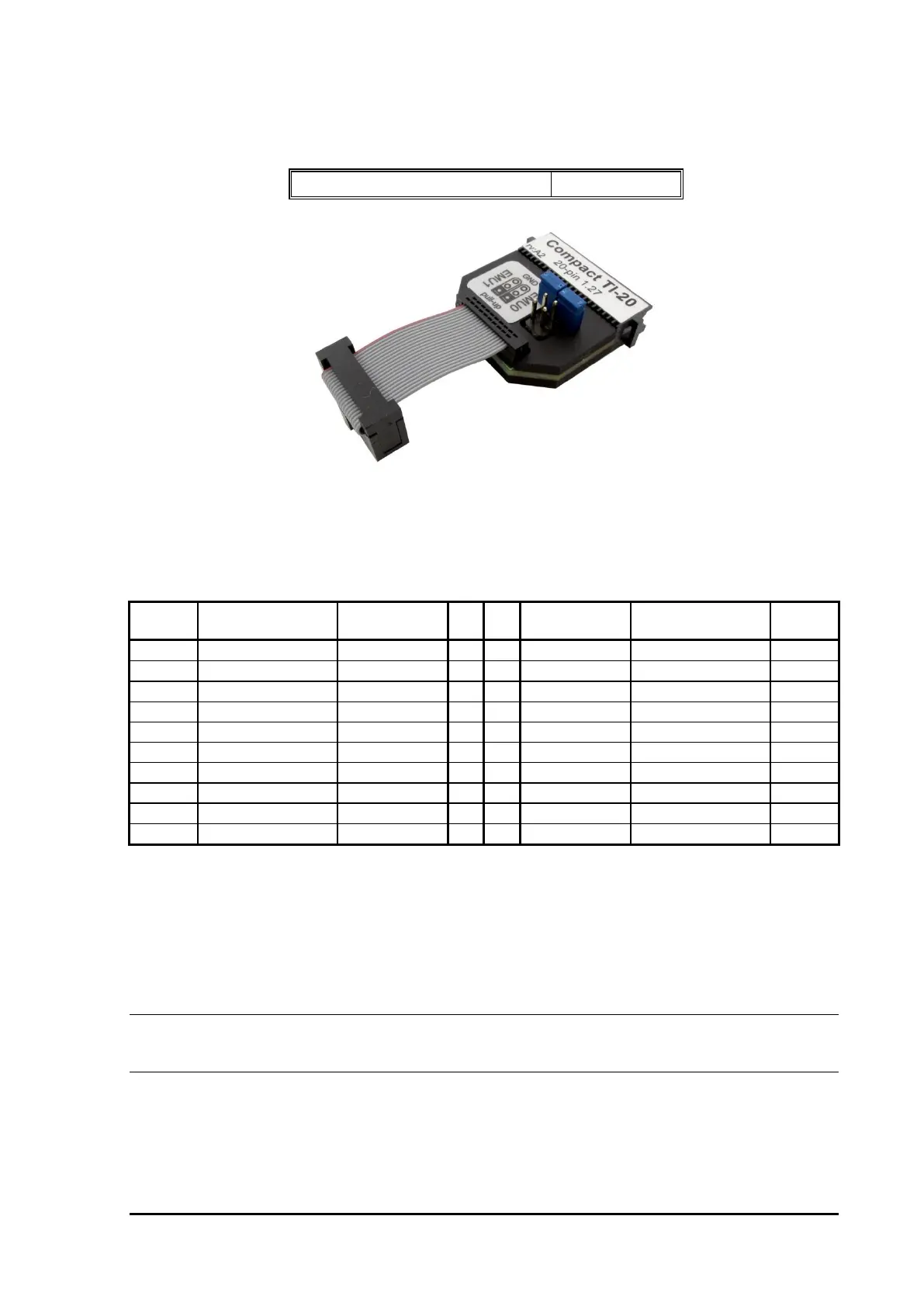 20-pin 1.27 x 2.54 mm Compact TI-20 Cable Adapter