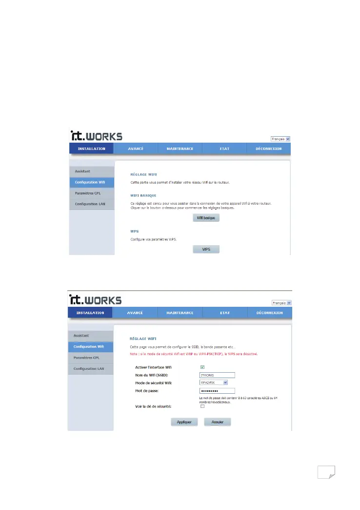 base dans la page CONFIGURATION SANS FIL; l'écran suivant apparaît.