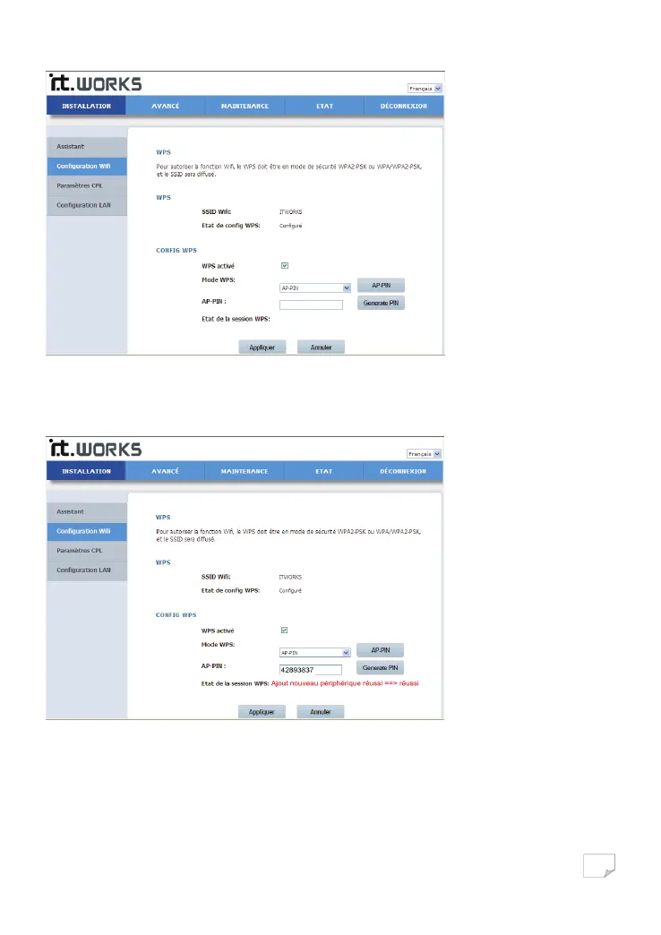 Tapez la valeur PIN de la carte réseau dans la page WPS (en vous référant au client de la carte réseau), puis cliquez sur le bouton