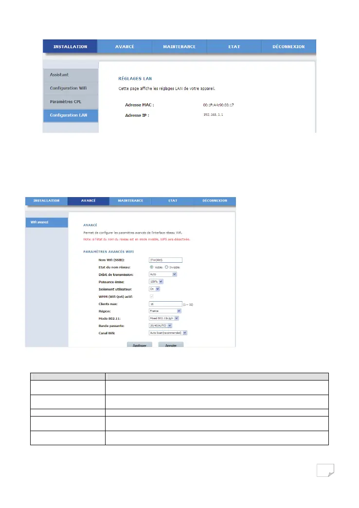 Le tableau ci-dessous décrit les paramètres de cette page: