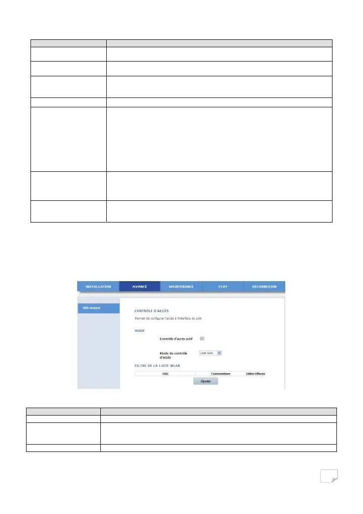 Le tableau ci-dessous décrit les paramètres de cette page: