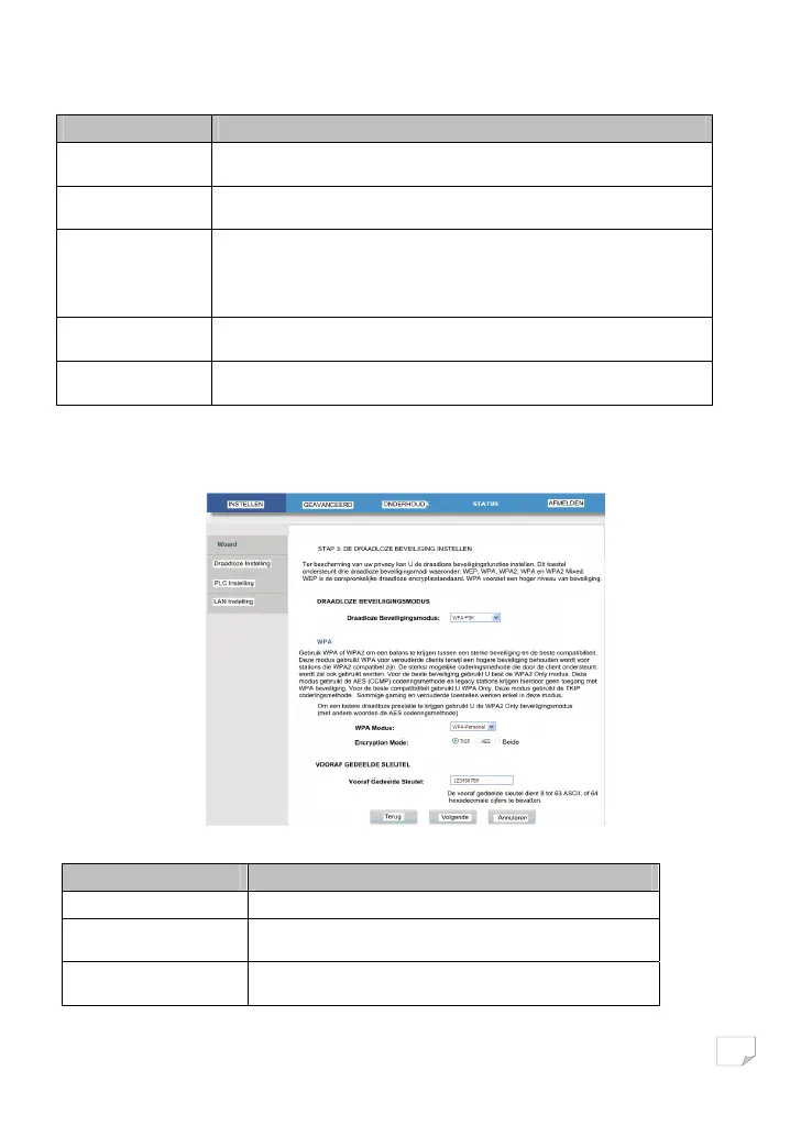 De volgende tabel beschrijft de parameters met betrekking tot de WPA modus: