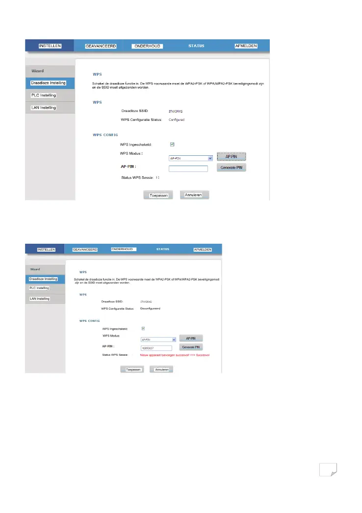 binnen de twee minuten op de AP-PIN toets in de rechter configuratiepagina van de netwerkkaart om de WPS verbinding te