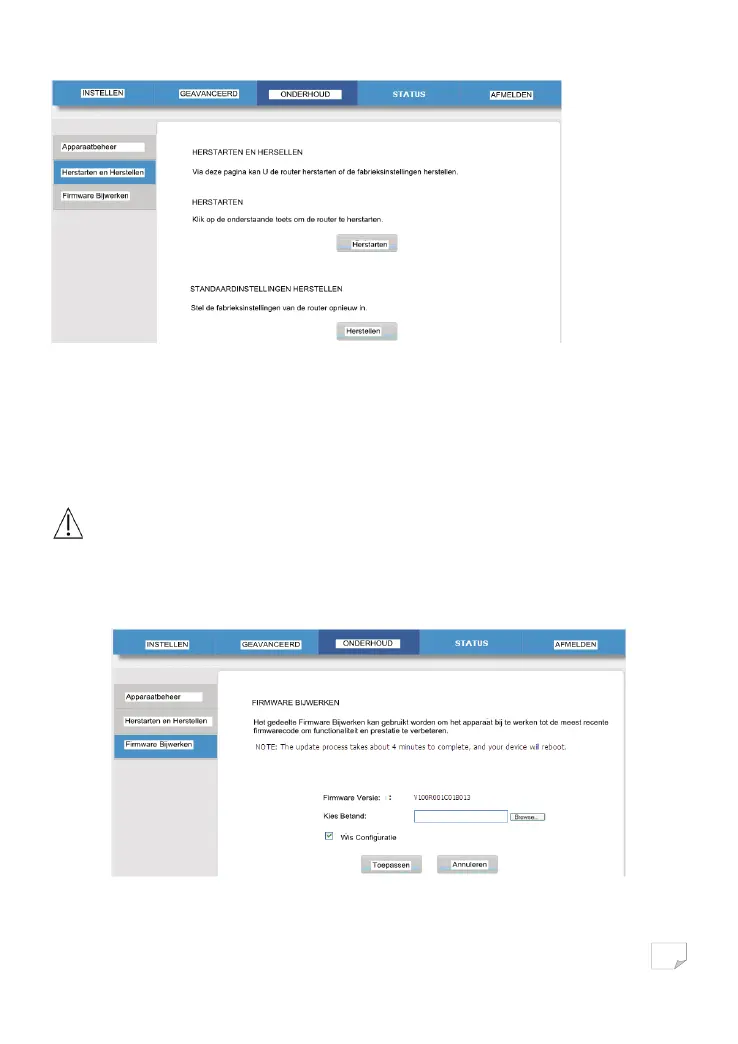 Selecteer MAINTENANCE > Firmware Update (ONDERHOUD > Firmware Update), en de volgende pagina zal verschijnen.