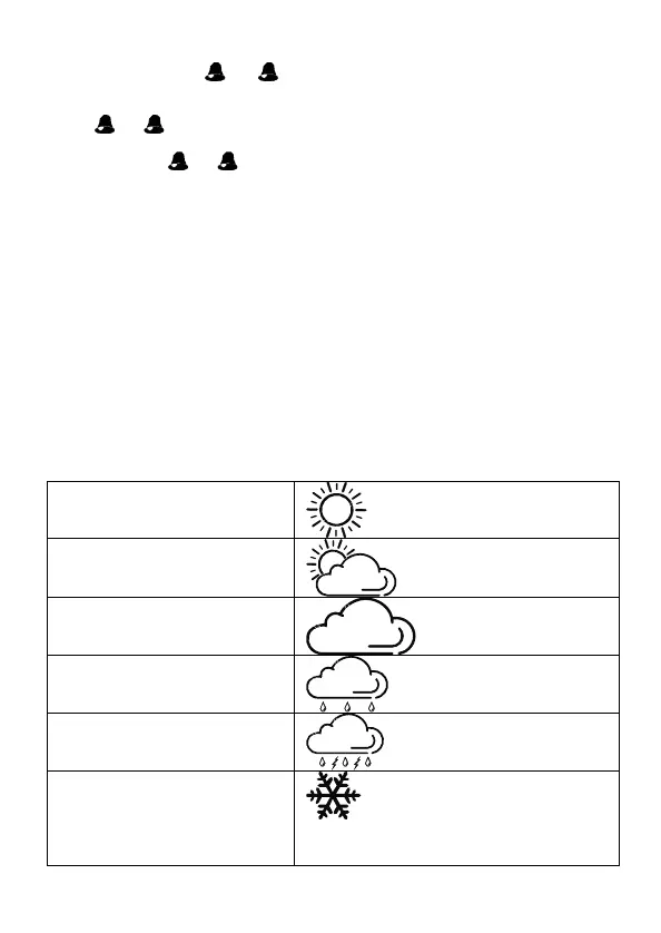 Wanneer de klok uw ingestelde alarmtijd bereikt zal het weerstation beginnen biepen om u wakker te